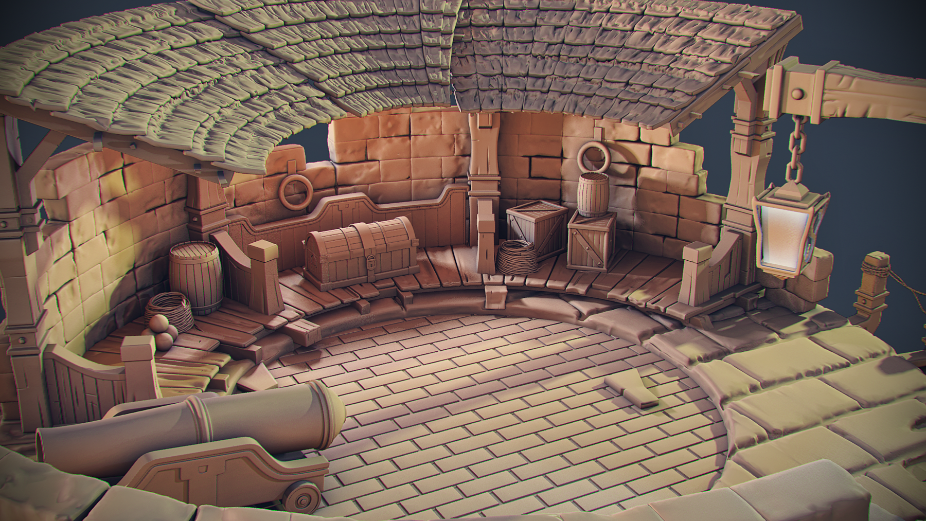 Saludos, me apetecía hacer un escenario clay basado en algún concept que tuviera un poco de todo, siempre me han resultado muy bonitos los escenarios sin texturas donde se aprecie el mayor detalle de modelado posible con una iluminación chula, aquí comparto el environment basado en el concept de Artyom Vlaskin esas distorsiones de cámara qué tienen los concepts 2d son difíciles de emular, pero estoy contento, espero que os guste.