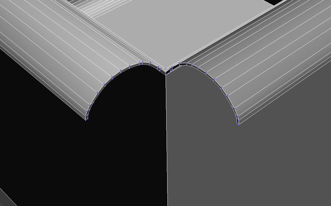 Yo creo que ese tipo de esquinas se hace con curvas, por lo que no se en tu caso, pero en Blender sería utilizar un SPIN para redondear la esquina.