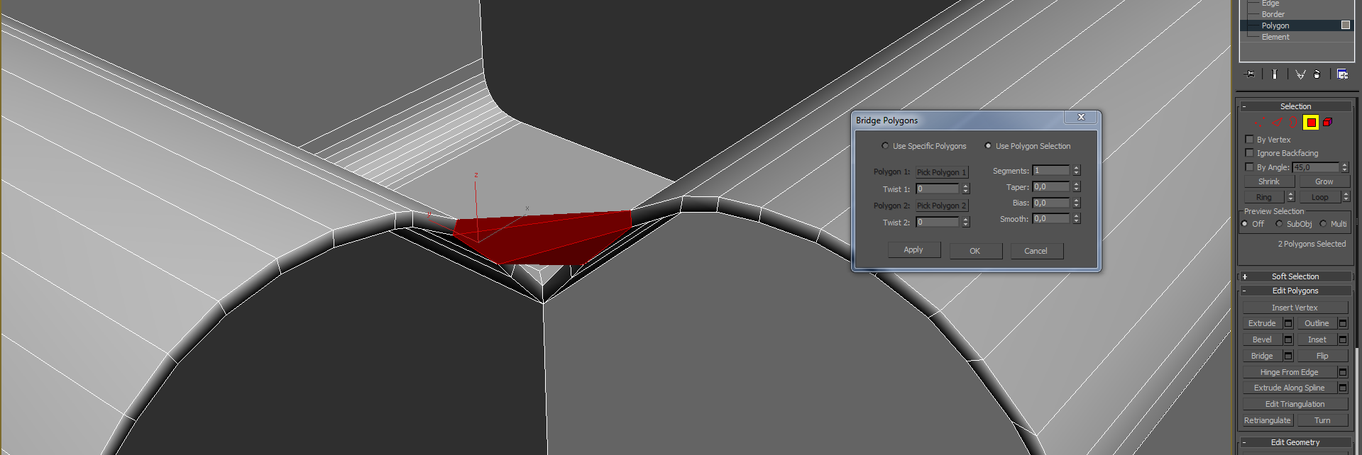 Esa es la opción que te digo, haz el bridge de todo y utilizad ese parámetro para posicionar las uniones. Es como un desplazamiento de los vértices soldados.