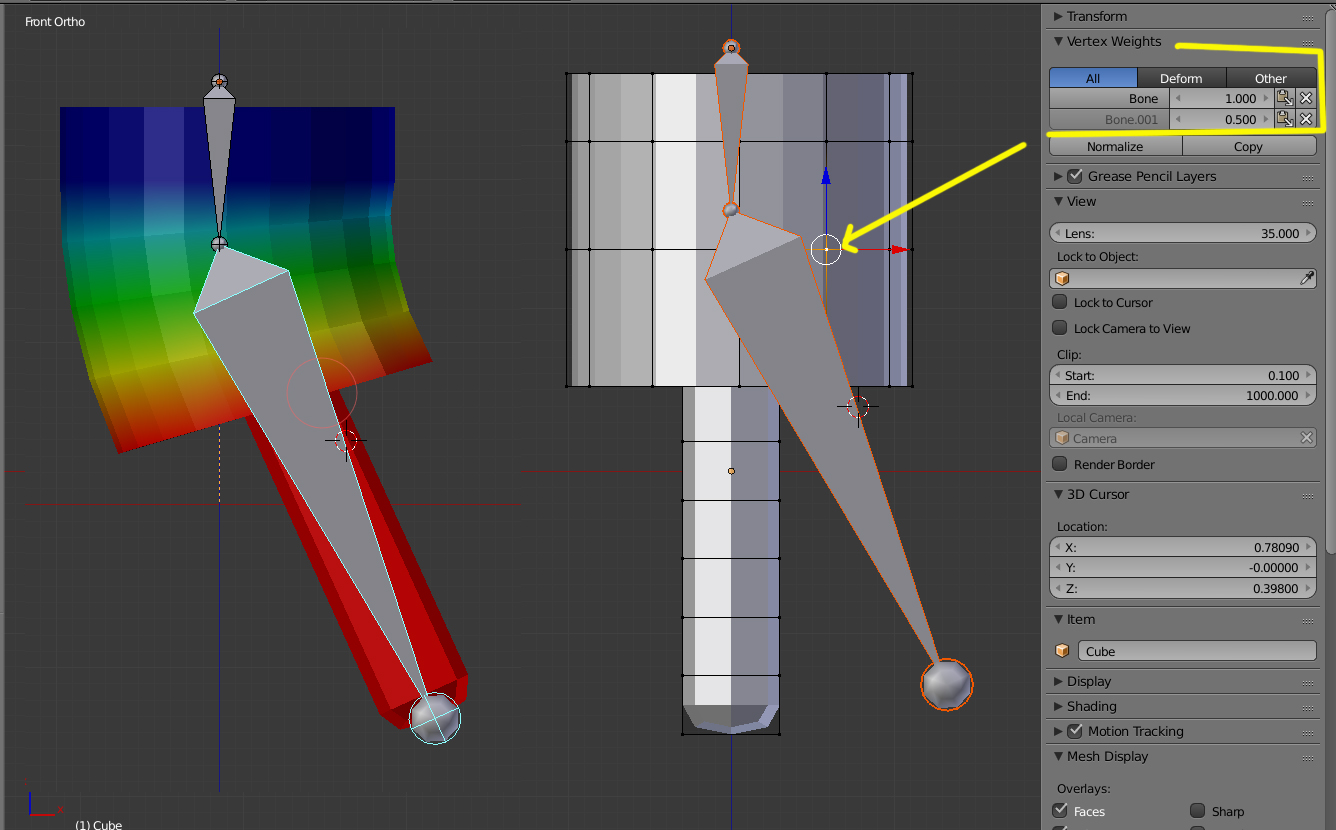 En este caso, al yo poner las influencias gradualmente ¿No deberían los vértices de mayor influencia moverse más que los de menor influencia al moverse el hueso? En mi modelos vértices se mueven lo mismo independientemente de la influencia qué le haya dado.