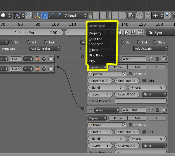 Otras opciones son las que ya vienen en el Actuator > Action que las hay de varias maneras, por ejemplo, Play, Flipper, Ping Pong, etc.