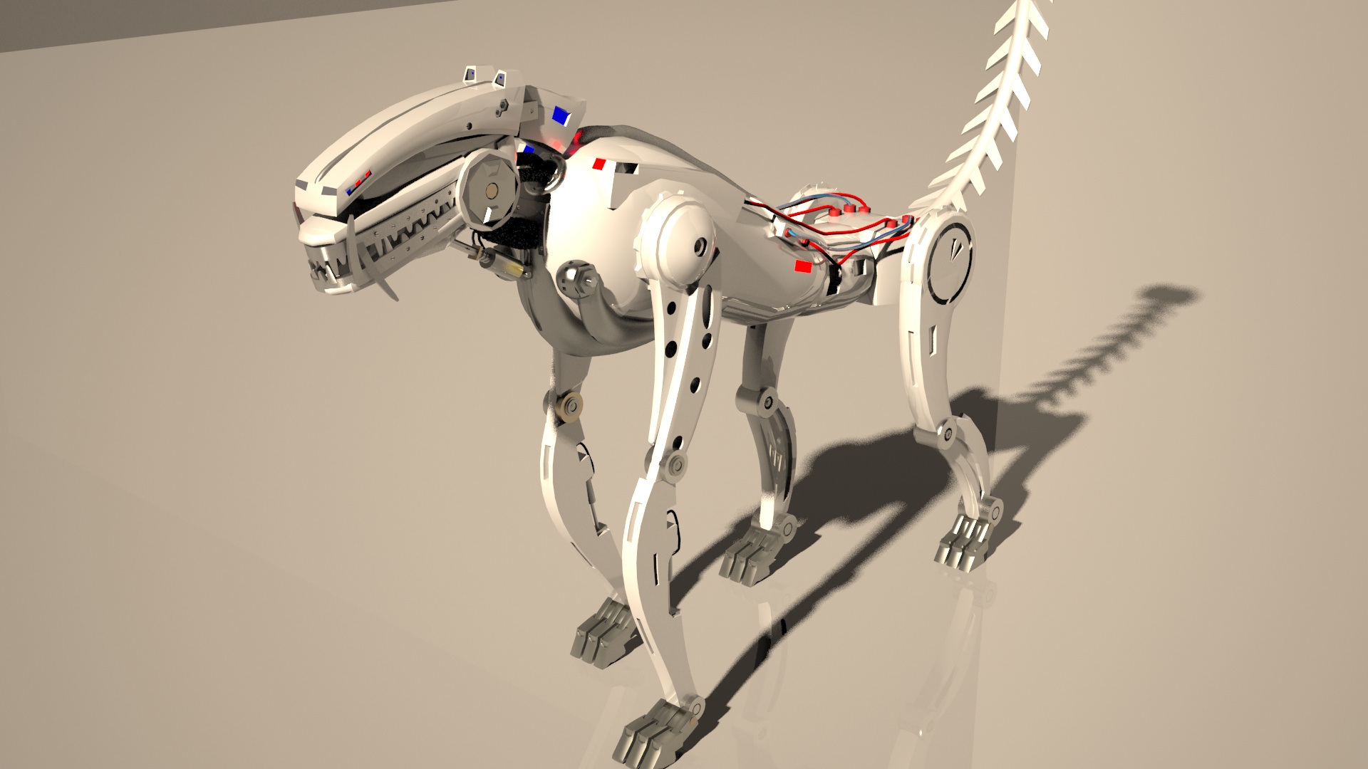 Buen trabajo amigo, por sugerir alguna mejora, creo que las pezuñas del perro robot, no están a la altura del resto del cuerpo, en lo que ha texturas se refiere.