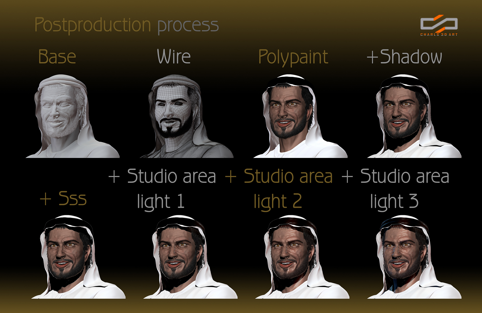 Me parece un muy buen trabajo amigo, si me das a escoger, donde muestras el proceso, prefiero la que tiene sombras bajo la nariz, la veo más real, un saludo y mis estrellas amigo.