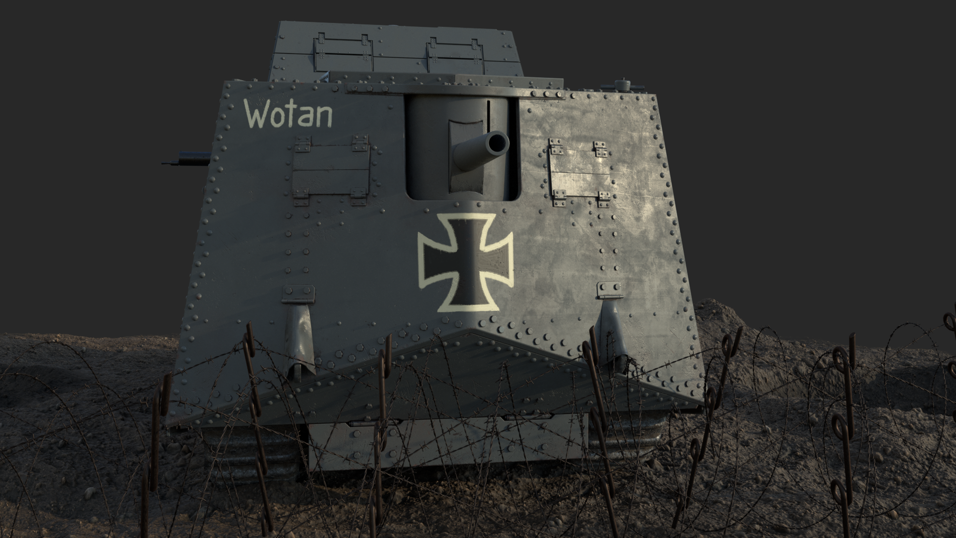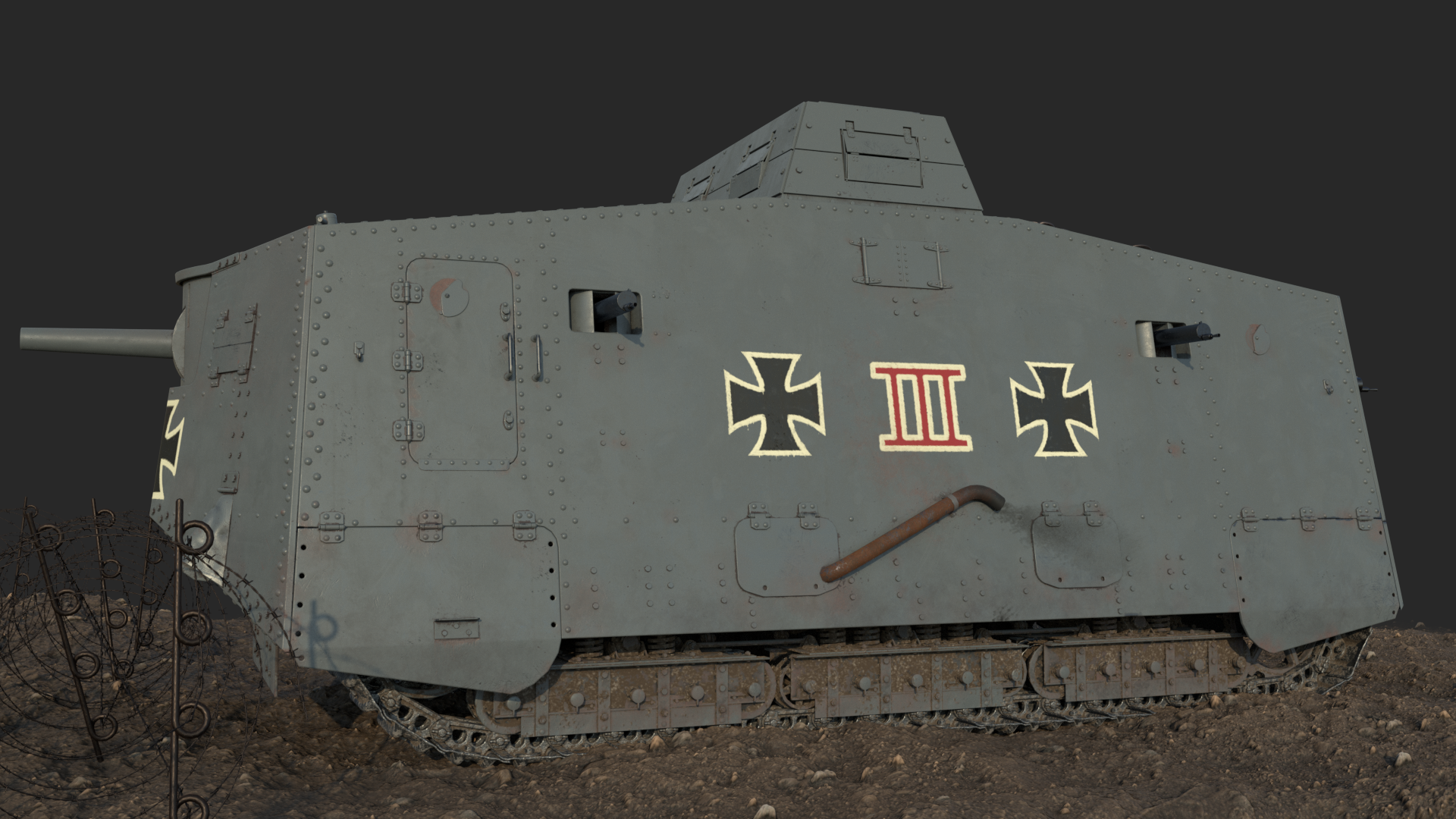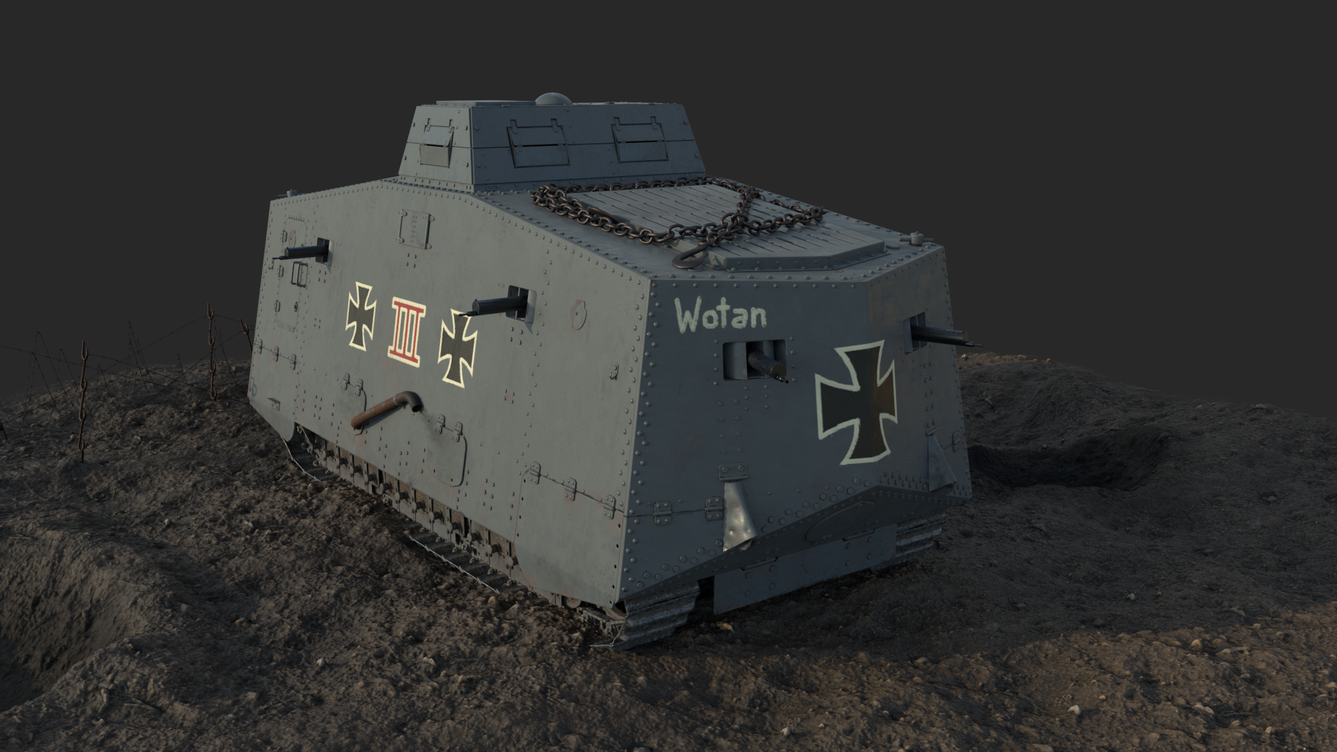 Lo doy por finalizado. Aunque se podrían mejorar algunos detalles como el de las marcas de las orugas en la parte trasera, que las modelé, pero al aplicar el displacement desaparecen.