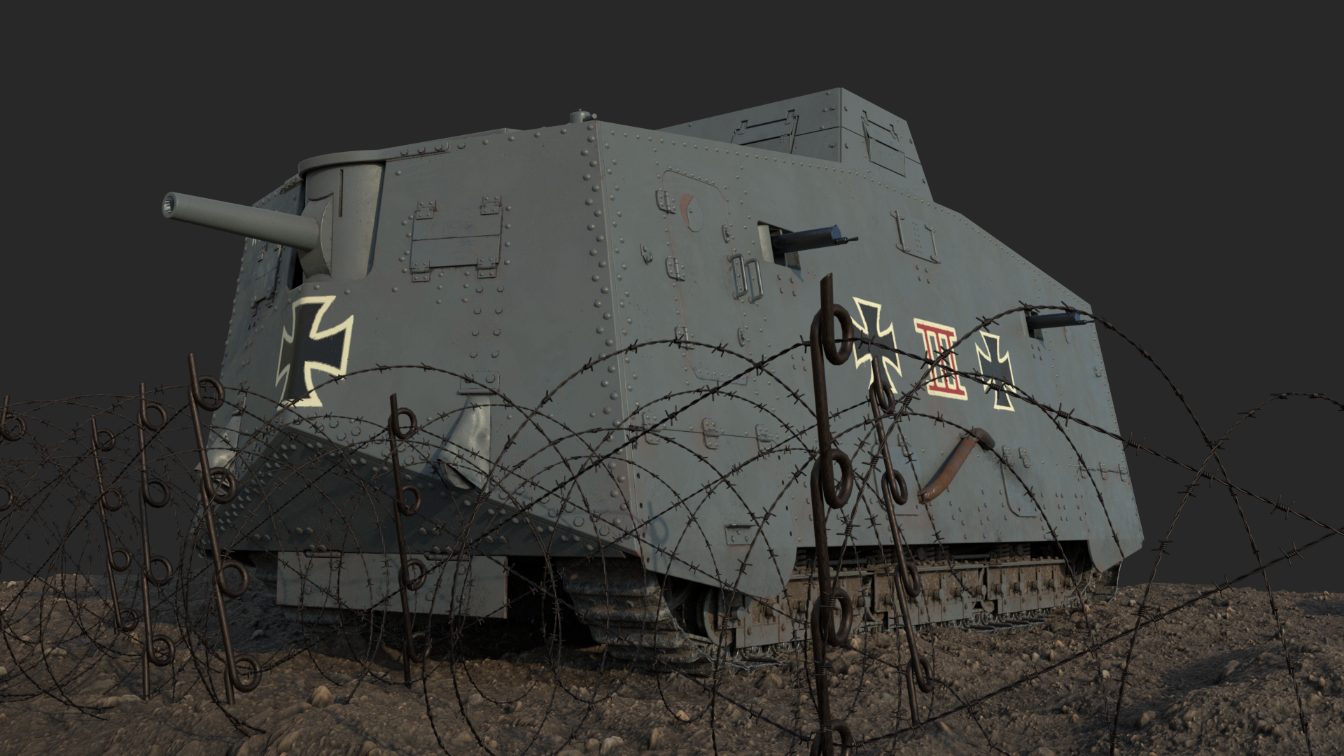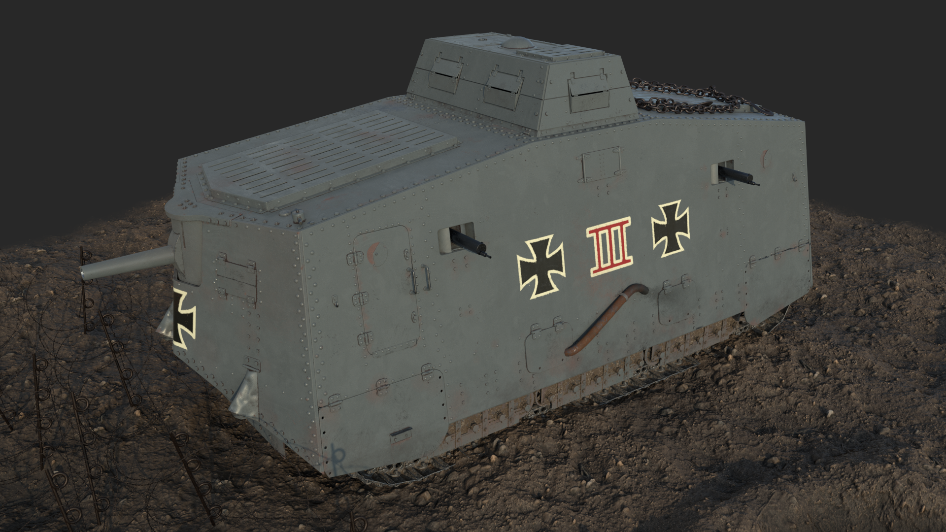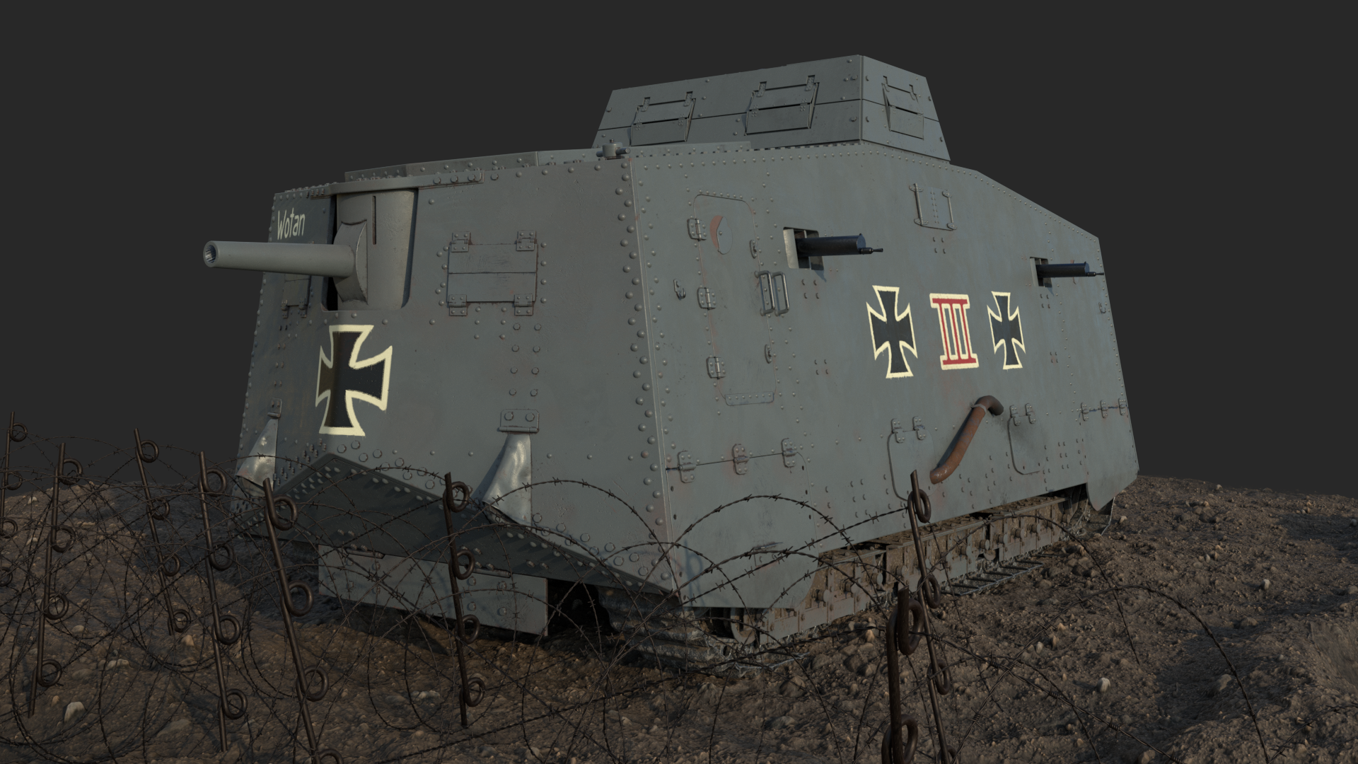 Lo doy por finalizado. Aunque se podrían mejorar algunos detalles como el de las marcas de las orugas en la parte trasera, que las modelé, pero al aplicar el displacement desaparecen.