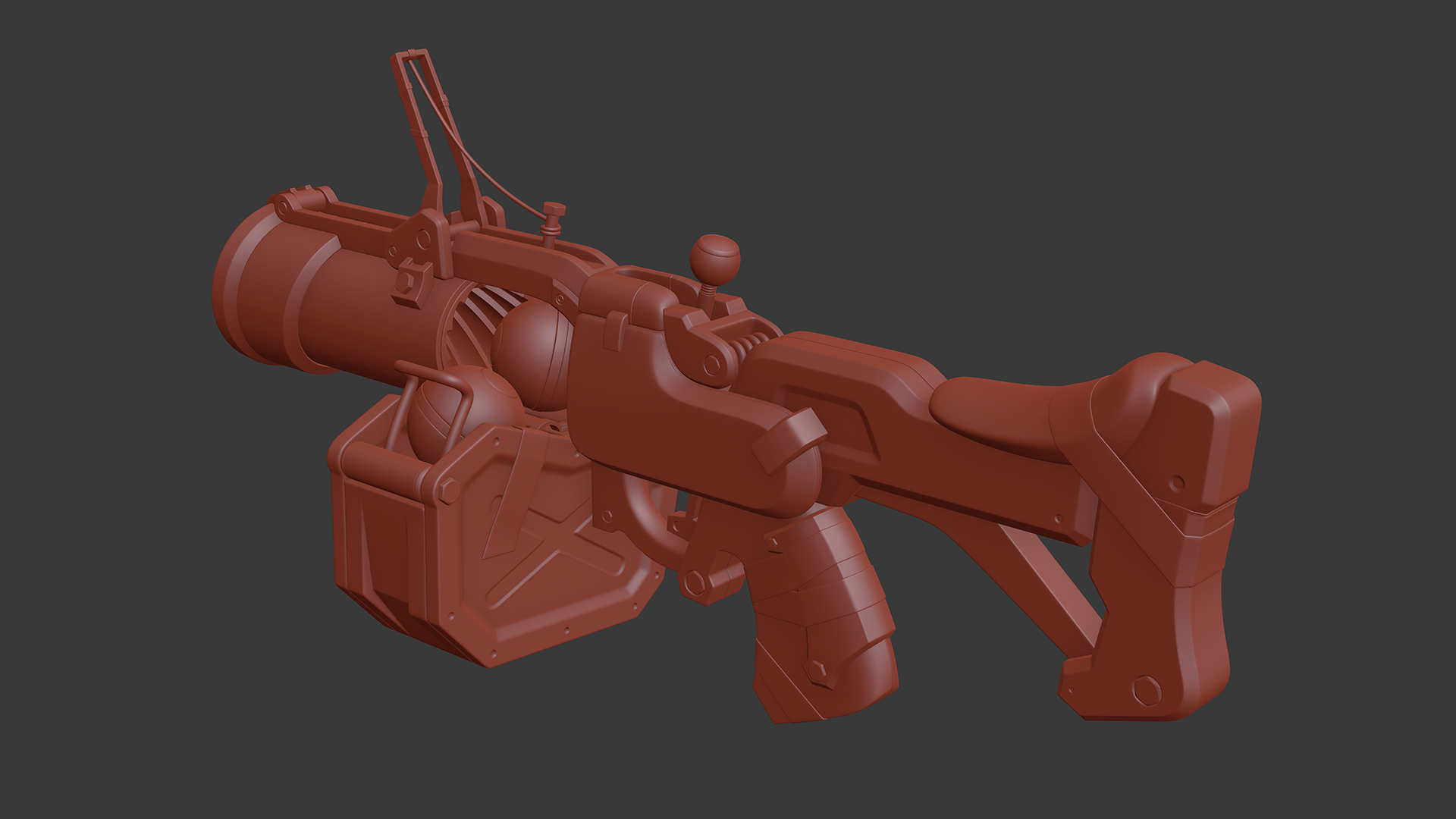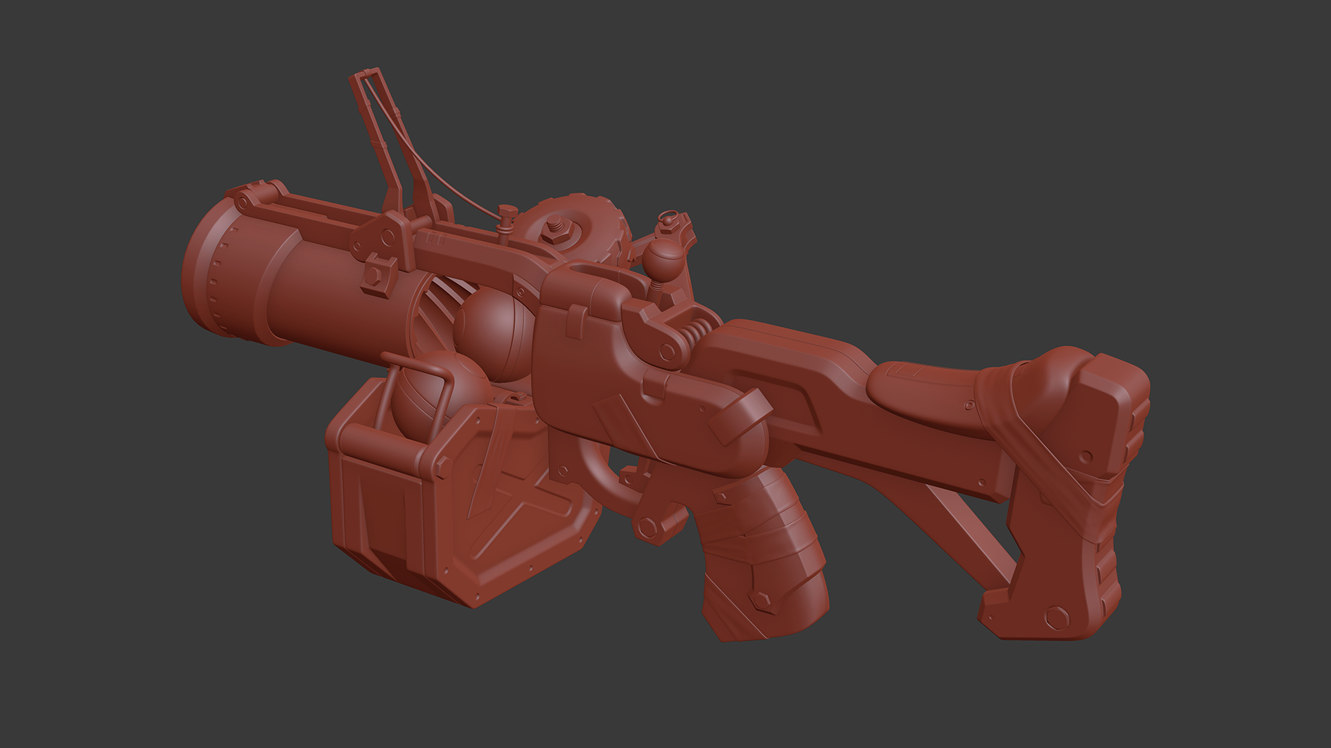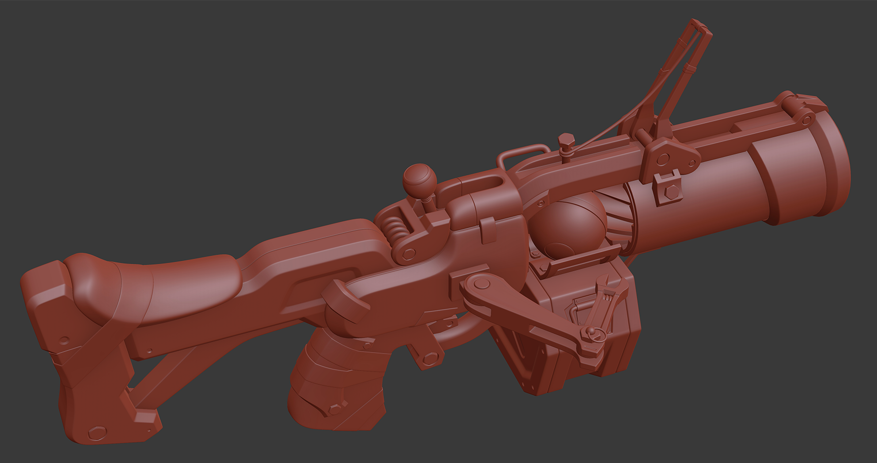 El caso es que por proposición de algunos de los alumnos, en las videoconferencias de esta semana hemos comenzado el proceso de creación de un arma basada en el lanzagranadas de Junkrat, uno de los héroes del videojuego Overwatch. La idea es hacer algo especial esta vez, llevando el modelo desde el inicio hasta su resultado final en lowpoly, pasando por retopología, UVS, texturizado, normalmente, en las videoconferencias del curso modelamos en directo, y a veces hacemos algo diferente sobre shading, compositing, o generalmente cosas sencillas, pero en este proyecto me gustaría darlo todo.