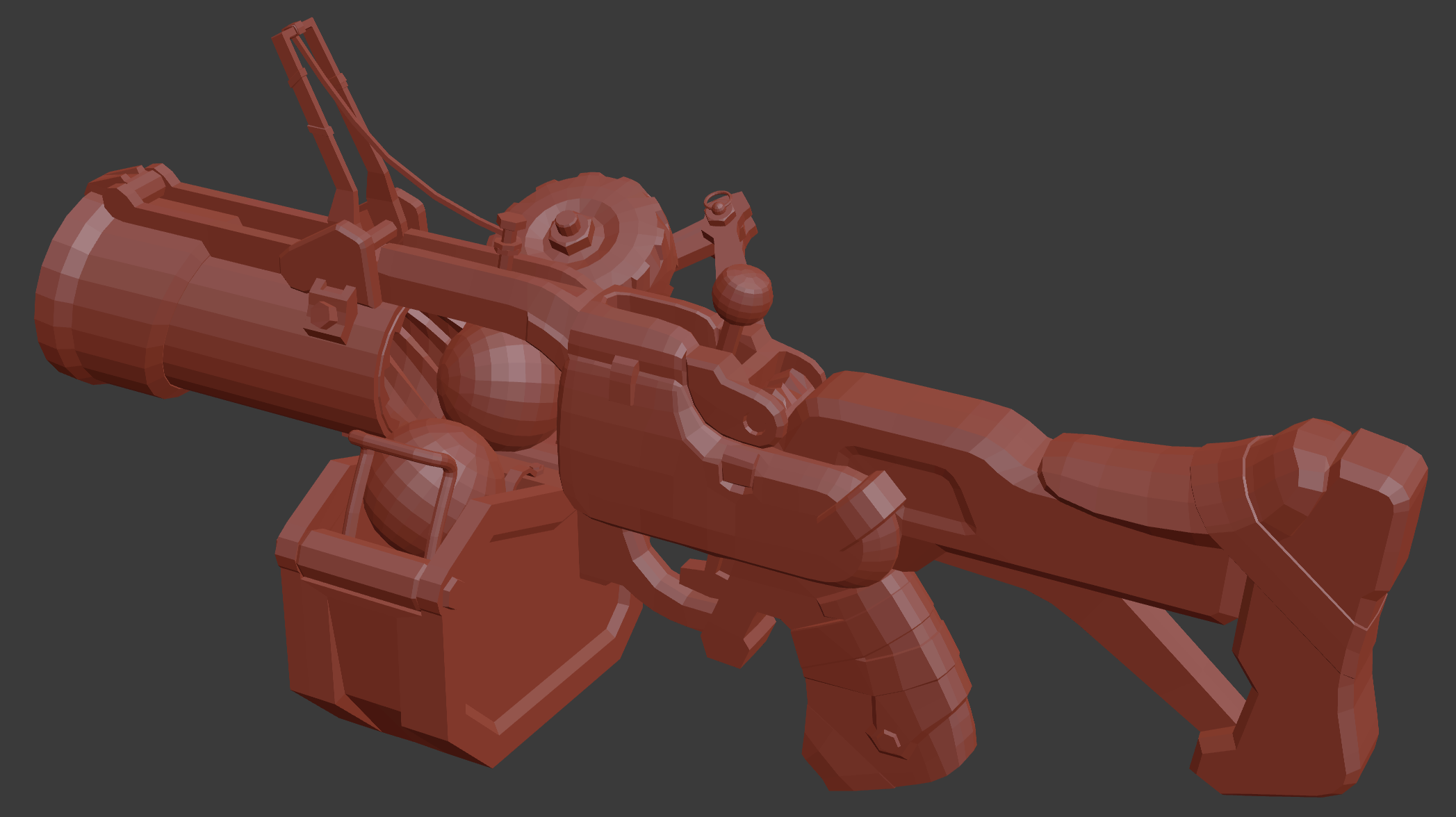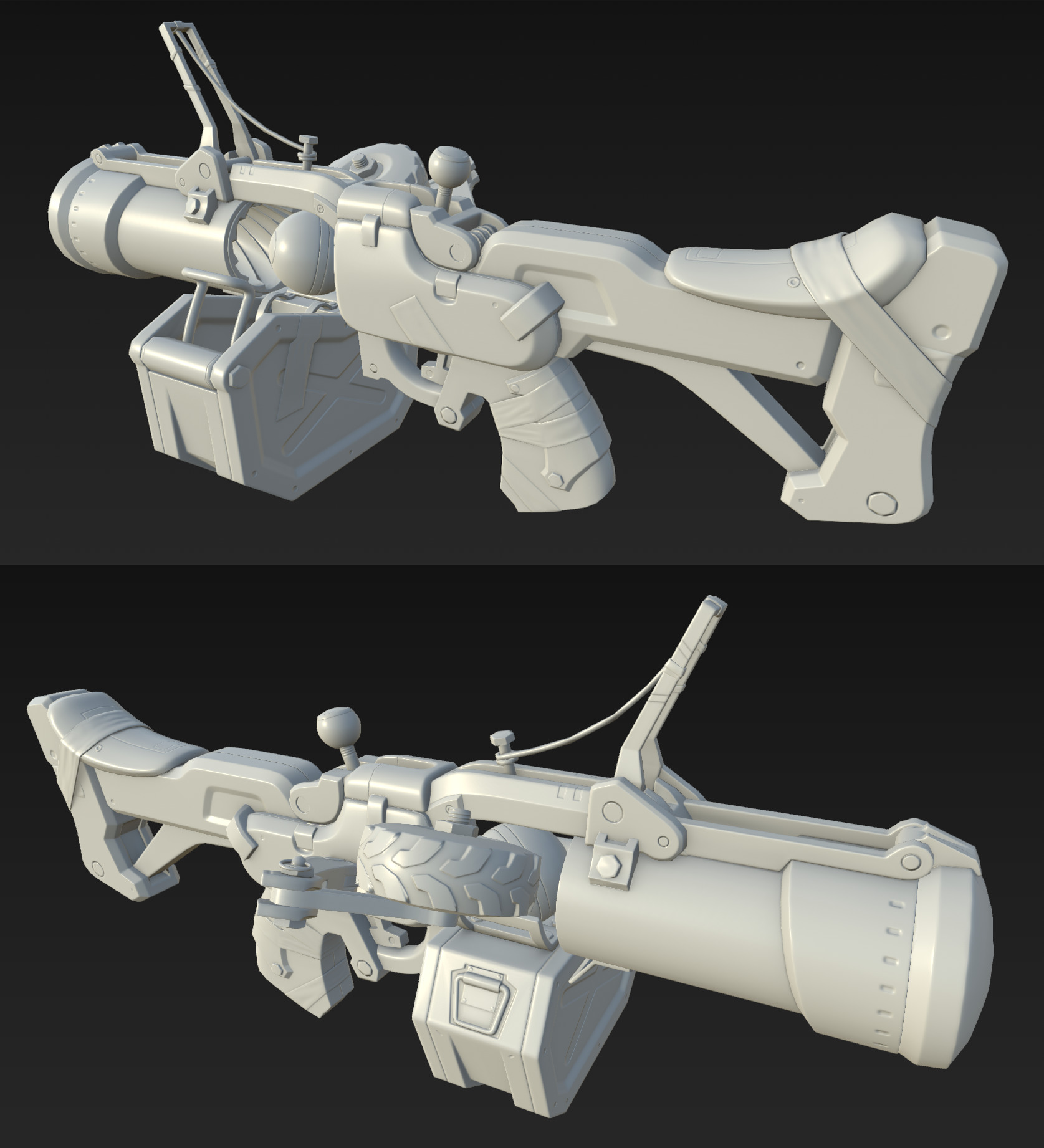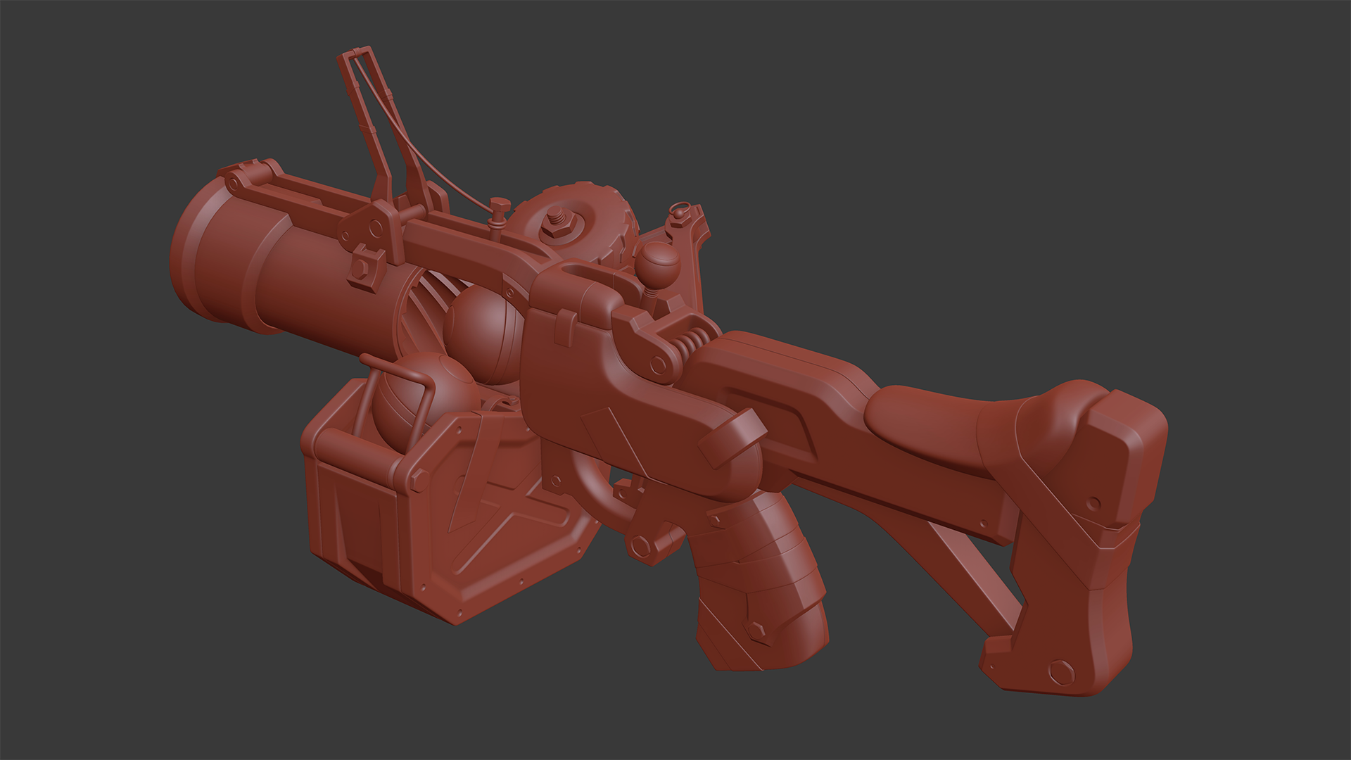 El caso es que por proposición de algunos de los alumnos, en las videoconferencias de esta semana hemos comenzado el proceso de creación de un arma basada en el lanzagranadas de Junkrat, uno de los héroes del videojuego Overwatch. La idea es hacer algo especial esta vez, llevando el modelo desde el inicio hasta su resultado final en lowpoly, pasando por retopología, UVS, texturizado, normalmente, en las videoconferencias del curso modelamos en directo, y a veces hacemos algo diferente sobre shading, compositing, o generalmente cosas sencillas, pero en este proyecto me gustaría darlo todo.
