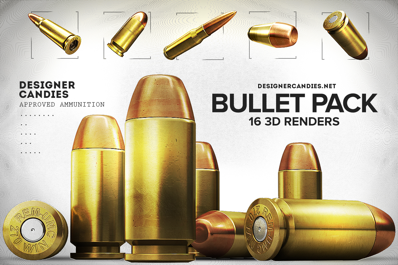 Una norma básica es la búsqueda de referencias para intentar luego recrear el material que buscas. Tus balas están recién sacadas de la fábrica, ni siquiera se han rozado entre sí, ninguna tiene una sola rayadura, muesca ni una pizca de polvo, grasa o suciedad; eso en el mundo real es difícil de ver, a menos que las balas vengan de fábrica embaladas (nunca mejor dicho) en cajas o bolsas individuales.