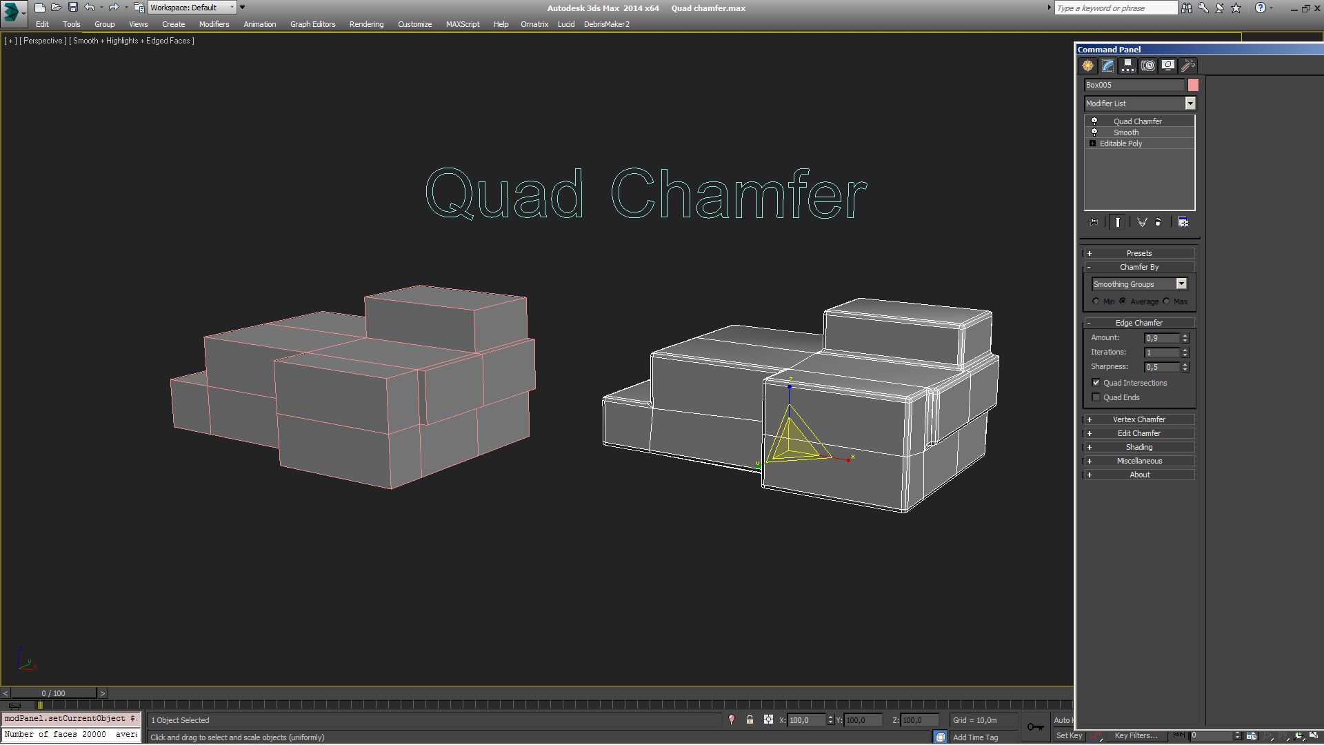 Luego aplicamos Quad Chamfer y la geometría se redondeará en las aristas de manera extremadamente prolija sin generar triangulaciones.