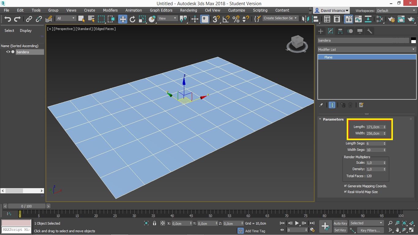 Lo primero es ver la resolución de la imagen, que en este caso es: 2560x1707, entonces en Max creas un plano basado en esas medidas, pero a escala y manteniendo la relación de aspecto o proporción. Es decir, si quiero hacer una animación de una bandera, primero busco que medida de bandera utilizare en la vida real. Digamos que la haremos de 2preguntaaproximadamente. Entonces haremos un plano de 2,56x1,707m en Max. Si la quieres de 1 metro aproximadamente, entonces divides 2,56 a la mitad, quedando en: