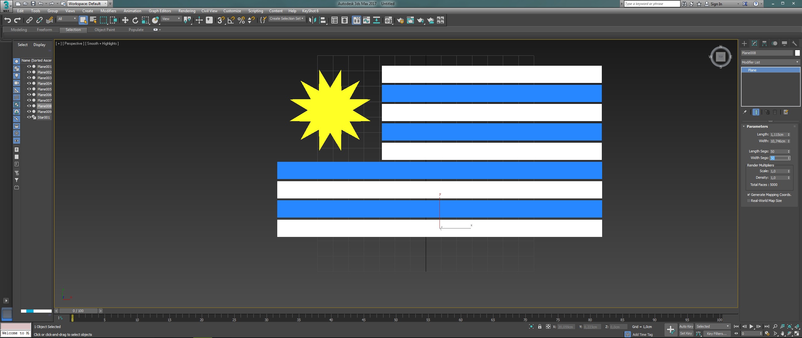 O, simplemente hacer una textura con las bandas azules y el sol, y las partes blancas en negro; y así quedaría para luego aplicar el modificador Wave?