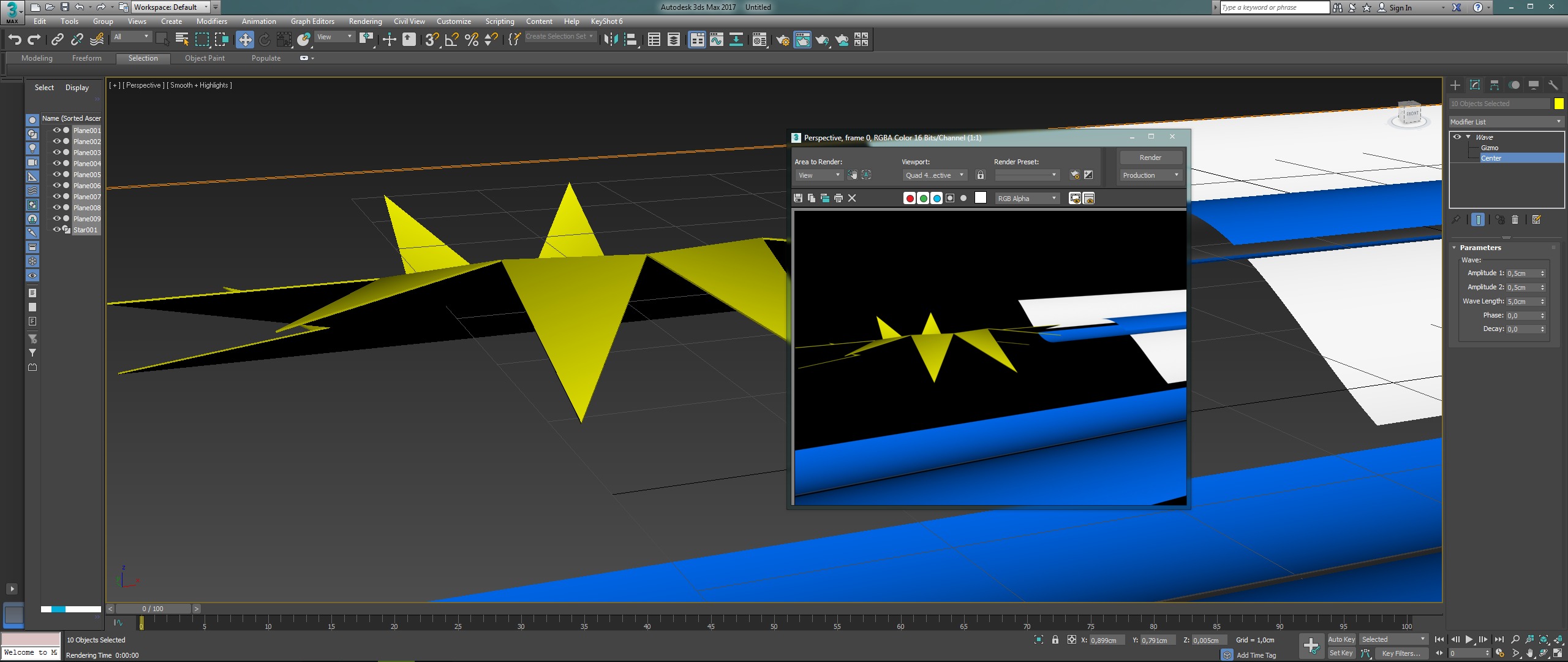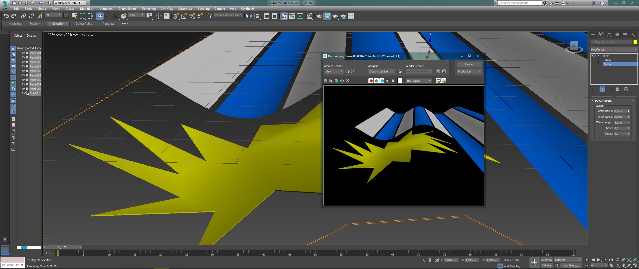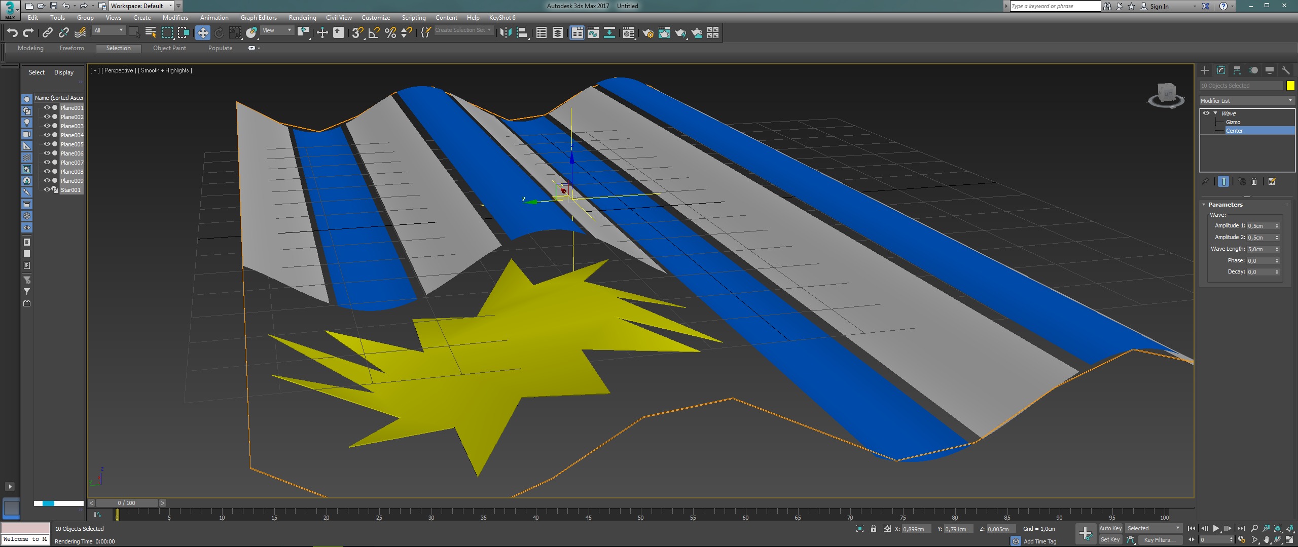 Buen medio día. He estado modelando un sol (para crear una animación de la bandera de Uruguay) en base a una forma de estrella en 3D Max, y a la hora de aplicar el modificador Wave, me he encontrado que en la animación, la misma, muestra con la luz los polígonos que la integran.