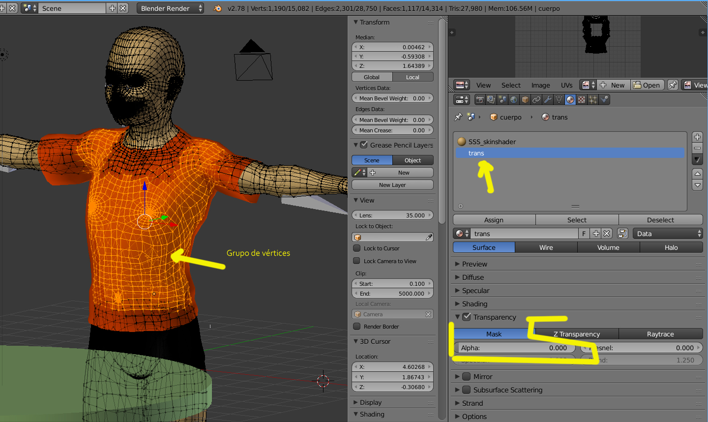 Muchas gracias. Problema de la cara interior de la camiseta resuelto ¿Para qué la camiseta no traspase el cuerpo del personaje en según qué posturas hay algún truco? Uso Blender Render por cierto.