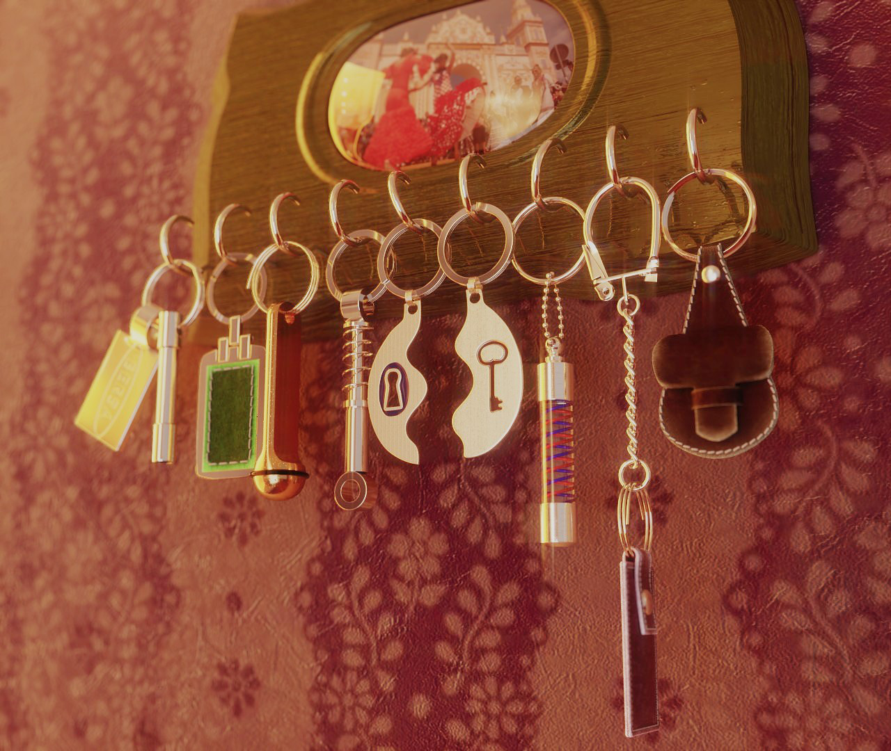 Un poco amarilla la imagen, pero lleva bastante trabajo tanto llavero.