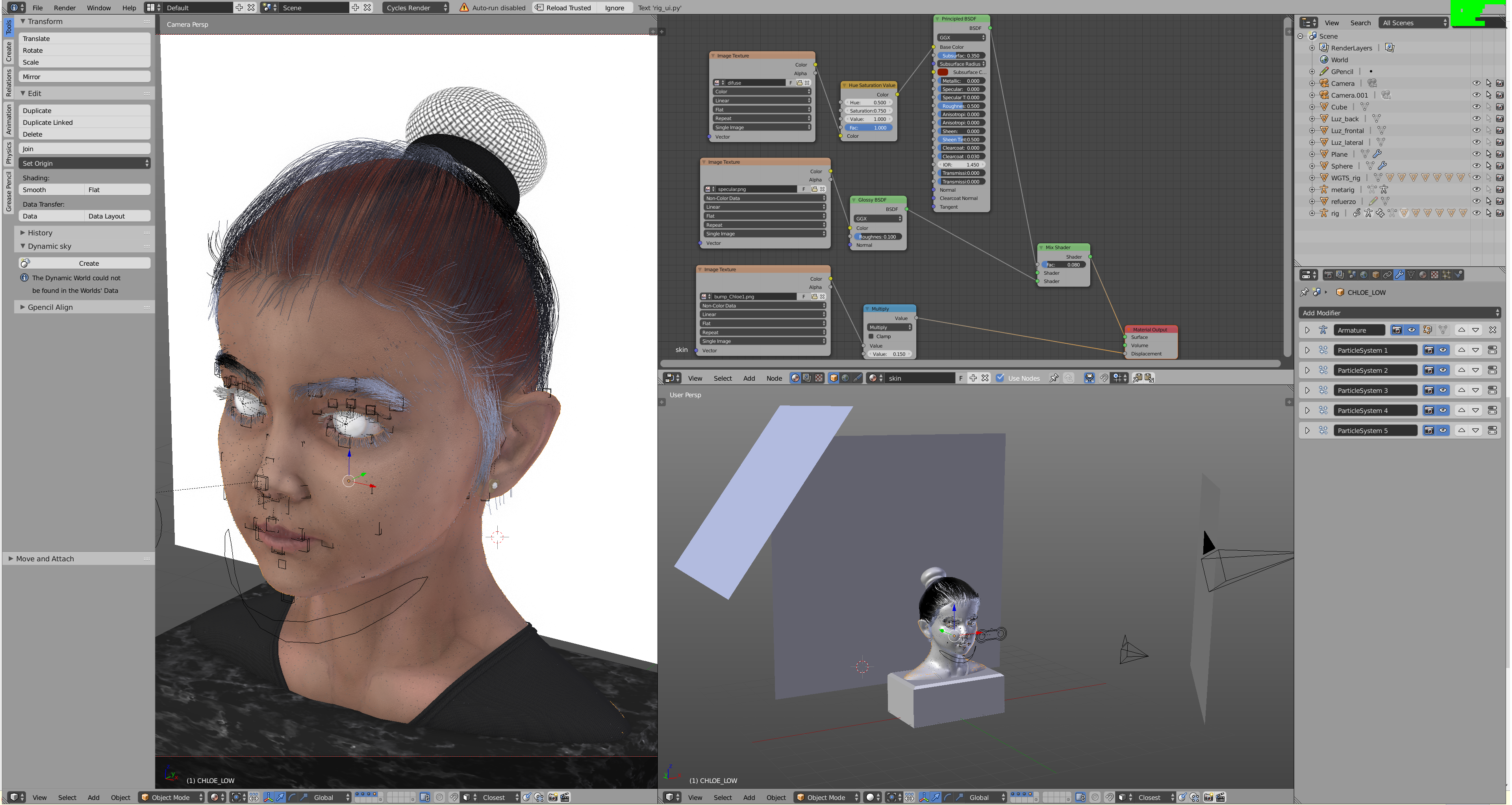 A la mejilla tal vez le falte un poco de suavizado (subdivisión) pues veo como unos puntos de triángulo. El resto genial. Saludos.