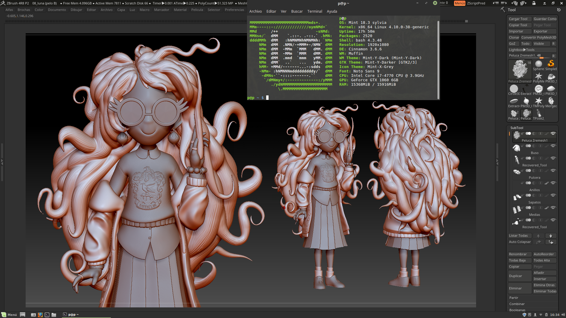 El software en juego fue Blender, Cycles, SubstanceP, y ZBrush bajo Wine en Linux Mint, que, por cierto, funciona de maravilla. A casi se me olvida. Gimp para la composición.