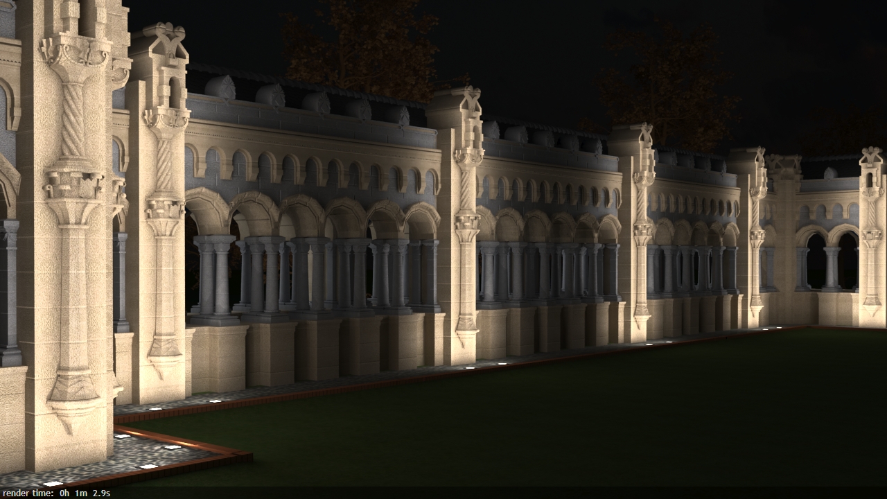 El caso es que es una imagen para un trabajo de iluminación puntual en los pilares, sólo he utilizado luces Vray.