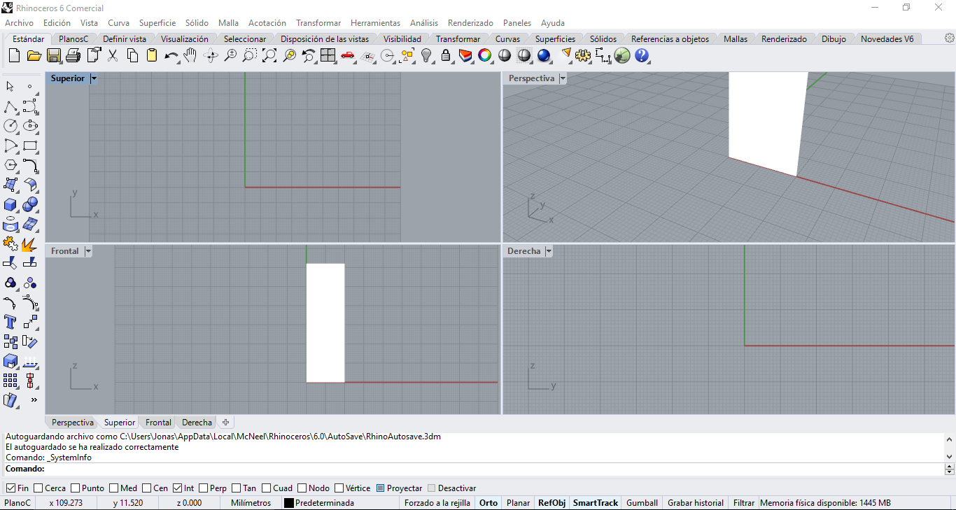 - De tener tarjeta gráfica, te recomiendo actualizar los drivers y activar su funcionamiento en las opciones de Rhino. Se encuentra en Options>View>OpenGL>Use Accelerated Hardware Modes.