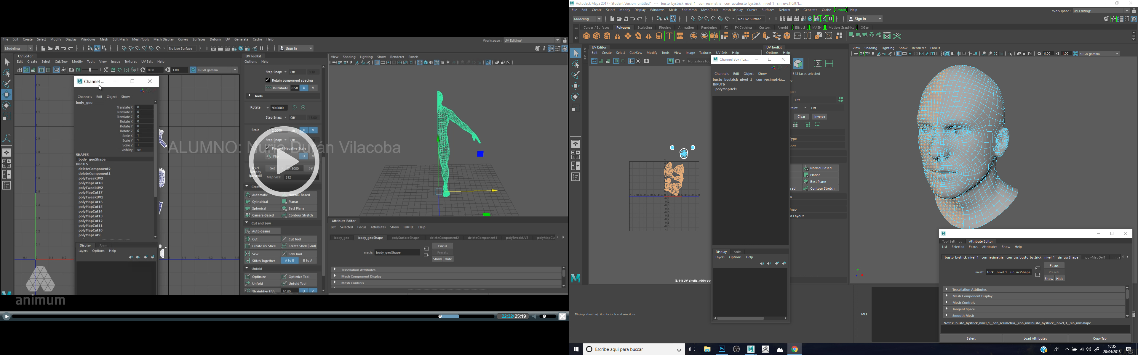 Hola, no tengo ni idea de Autodesk Maya, pero necesito hacer mis UV simétricas, siguiendo una video lección, el caso es que necesito que en la ventana qué despliego a la derecha, aparezcan los mismos parámetros que la qué despliegan en la imagen de la izquierda, ¿alguien podría ayudarme? Gracias.