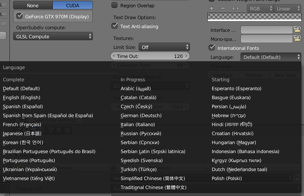 Mi versión de Maya dispone de inglés, japonés y chino. No MÁS. Gracias.
