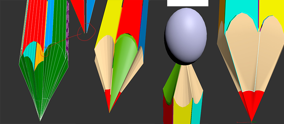 Por otro lado se hacen las splines, render in viewport, se les da la forma qué consideremos adecuada, yo simplemente he hecho una y la he copiado varias veces, en tener las formas que queremos se convierten a Edit Poly, se atachan al cilindro, se centran cada una con el polígono que les corresponda de ese anillo que quedaba antes y se unen mediante bridge o weld, se hacen los ultimos ajustes para qué la union sea fluida y terminado, en mi caso, unos 10 minutos.