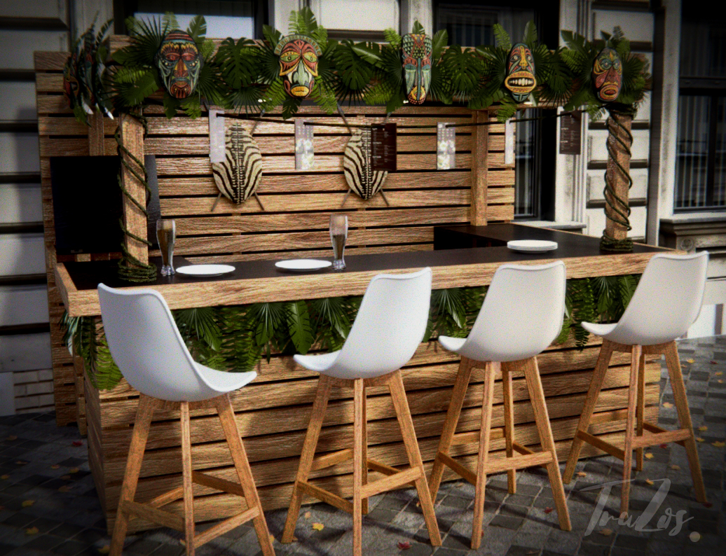 Hola a todos, hace mucho que no participaba del foro, más bien me había mantenido bastante alejado de esto del 3D. No siendo más, aquí les dejo una escena qué di por terminada debido a qué fue un favor para un amigo y pues llevaba algo de afán. Es un stand para comida con decoración Africana algo tropical, las hojas no se ven muy naturales puesto que la idea es que pareciera de esas sintéticas que usan para decorar, y la pared del fondo es una textura qué descargue intente darle un poco de realismo no elabore algo mejor a falta de tiempo y pues es solo un favor. Trabajado en Blender y retocado en Adobe Photoshop, Aquí adjunto a ver qué tal acepto críticas y recomendaciones.