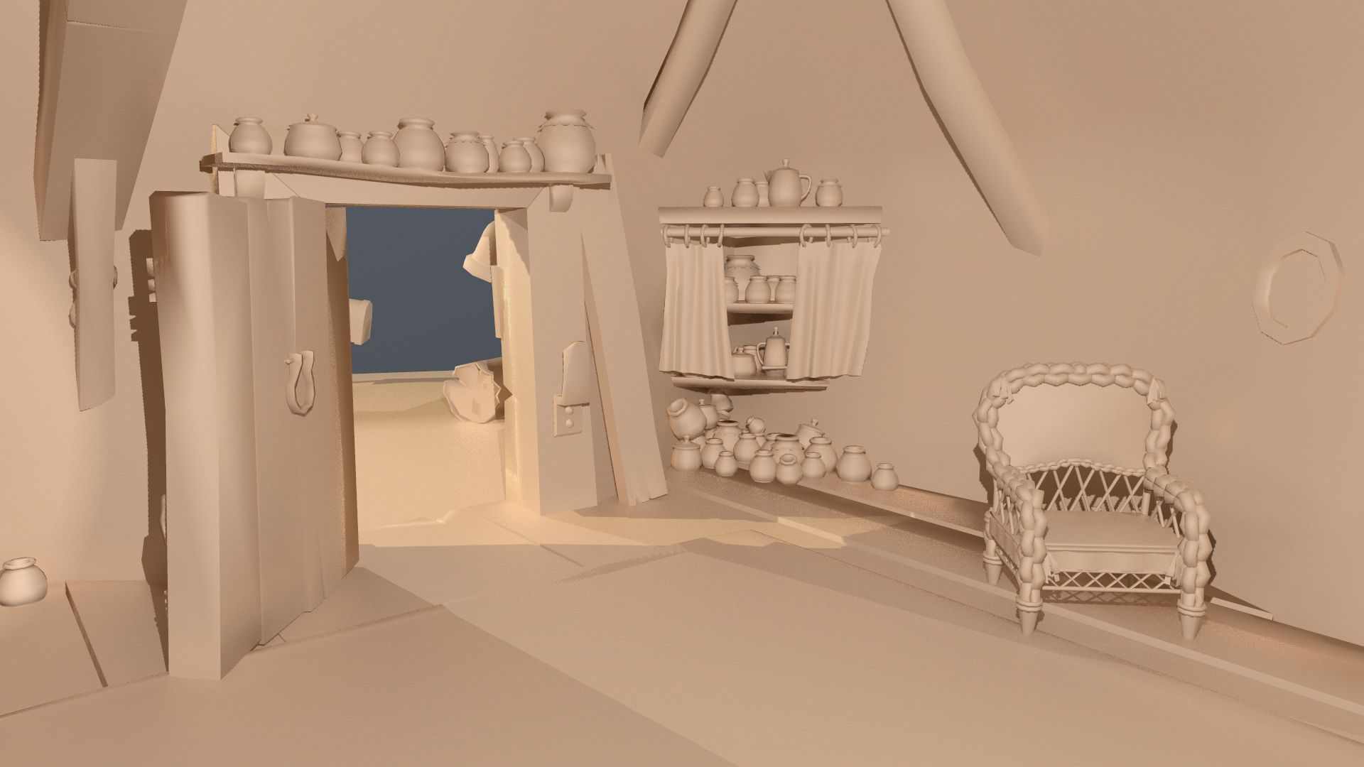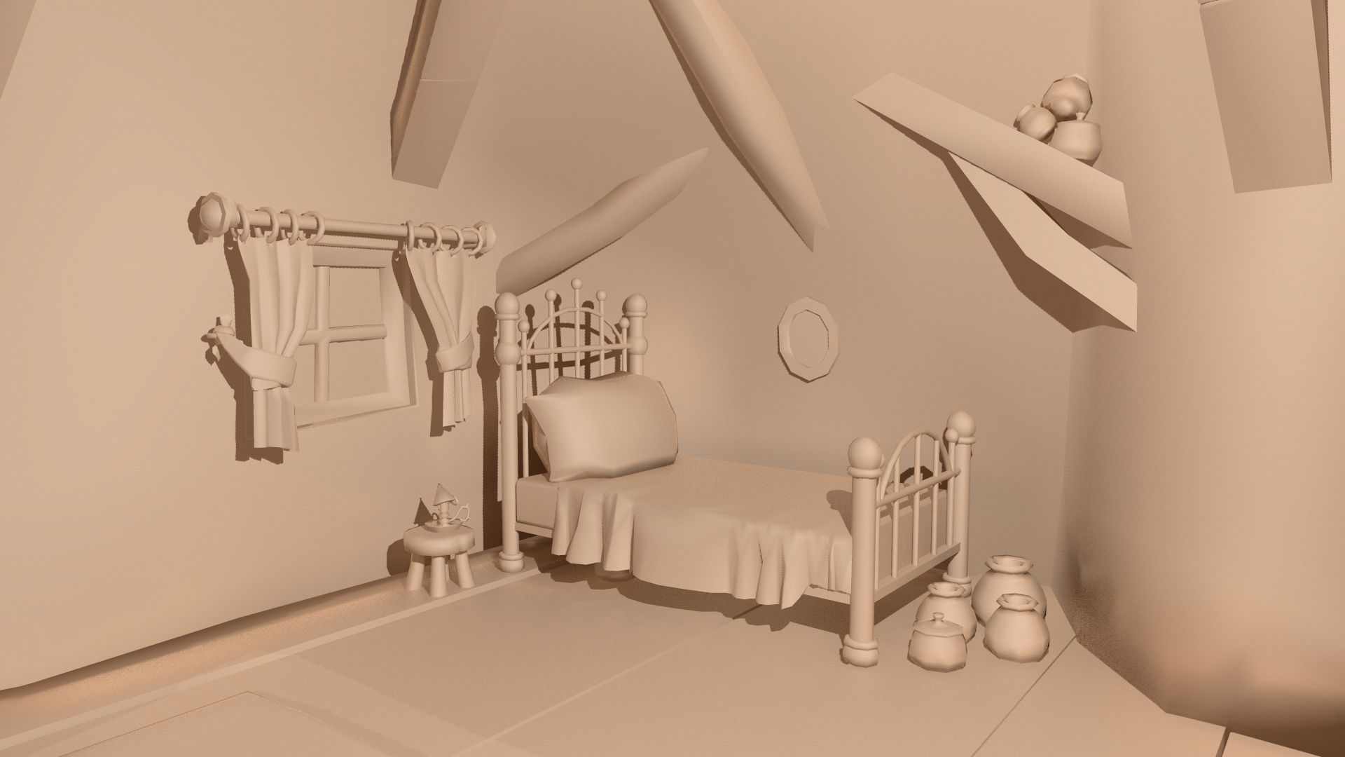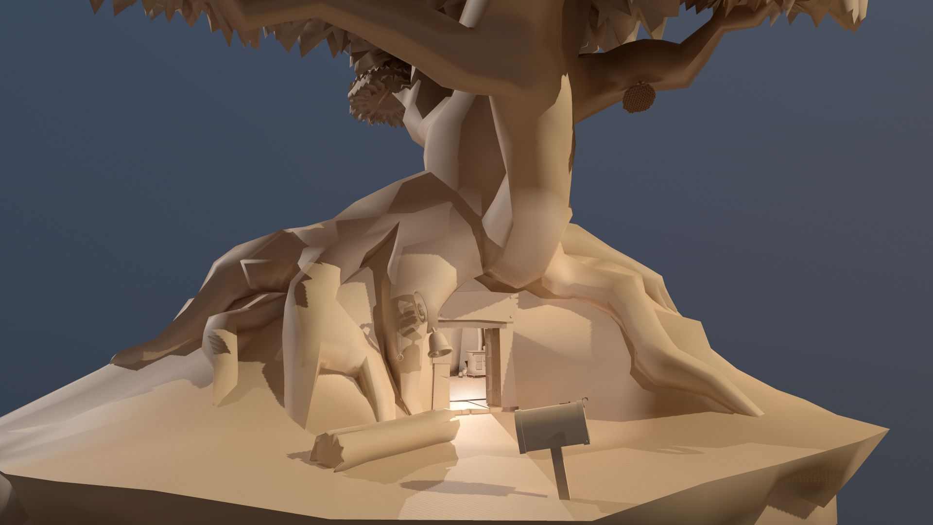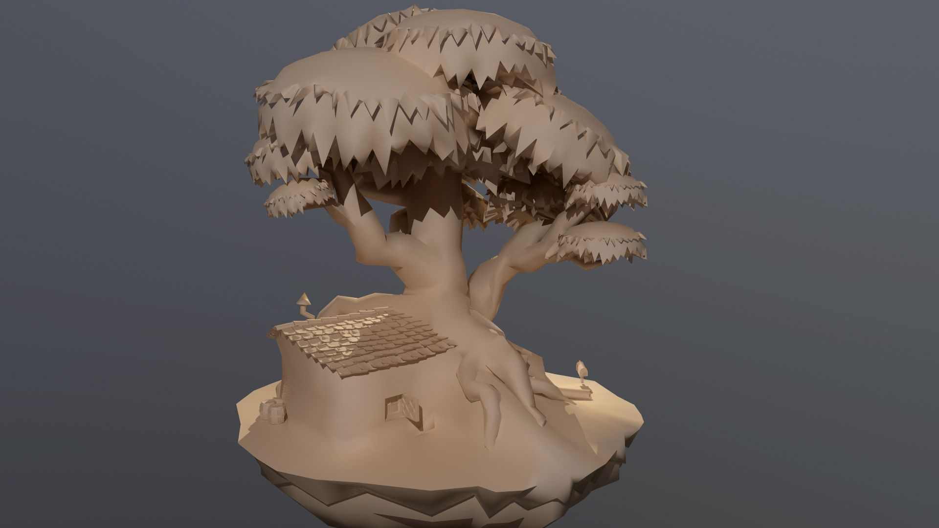He hecho el exterior y el interior y solo me faltarían las texturas. Aunque la copa del árbol la retocaré, ya que la veo muy puntiaguda.