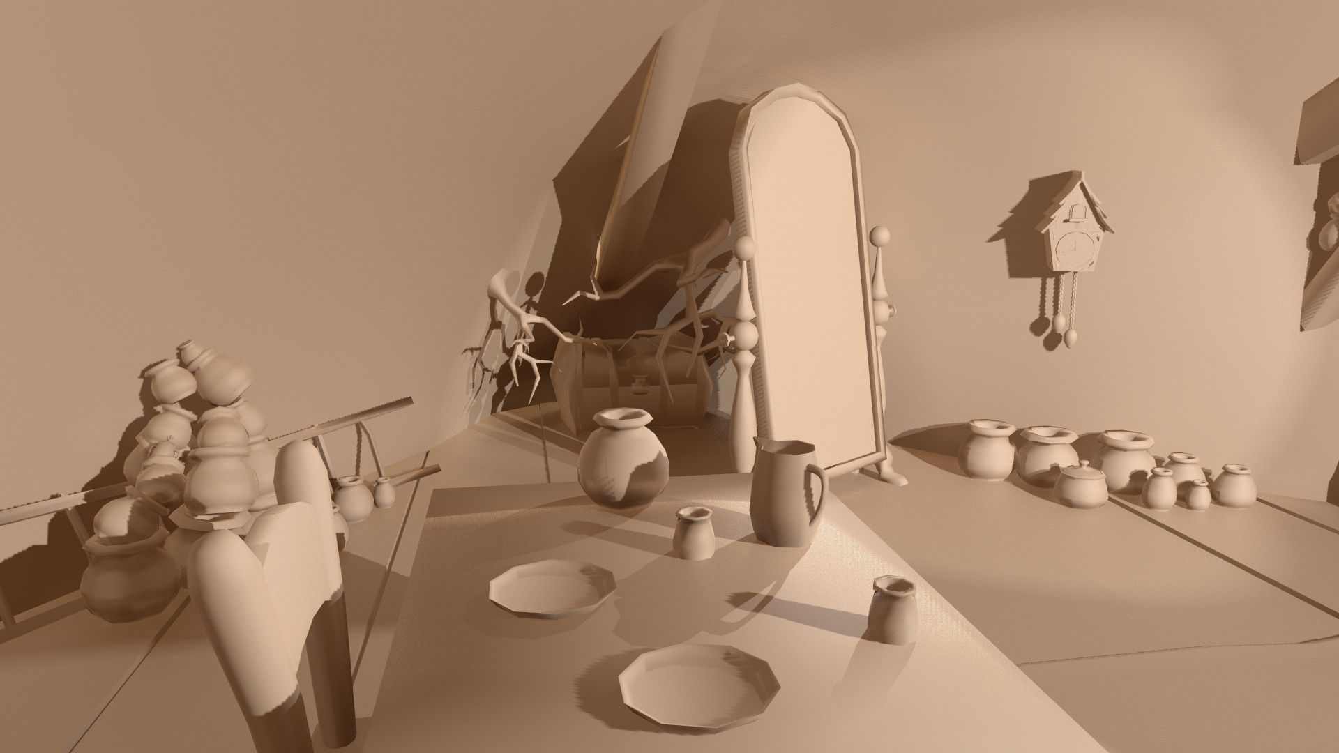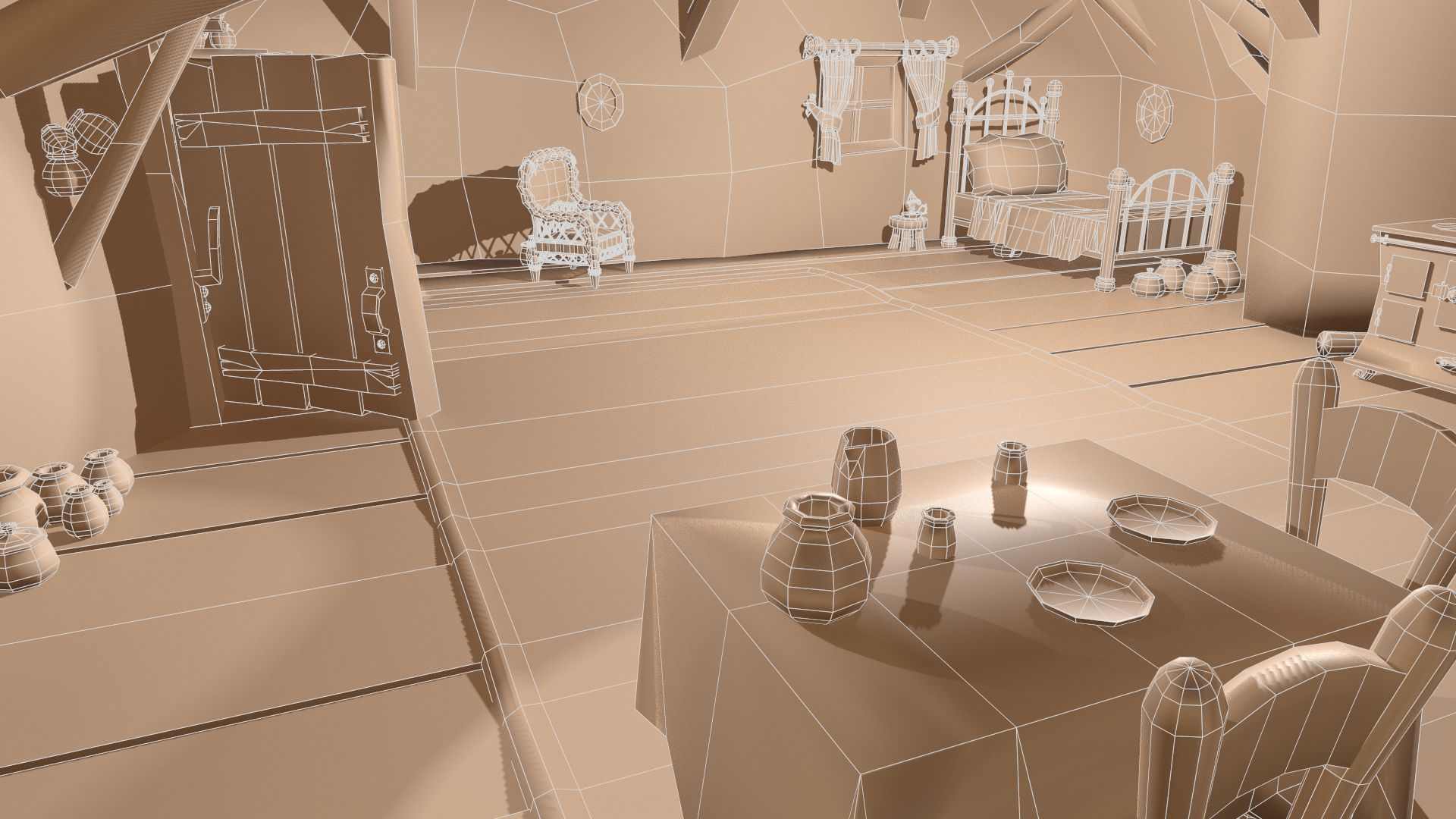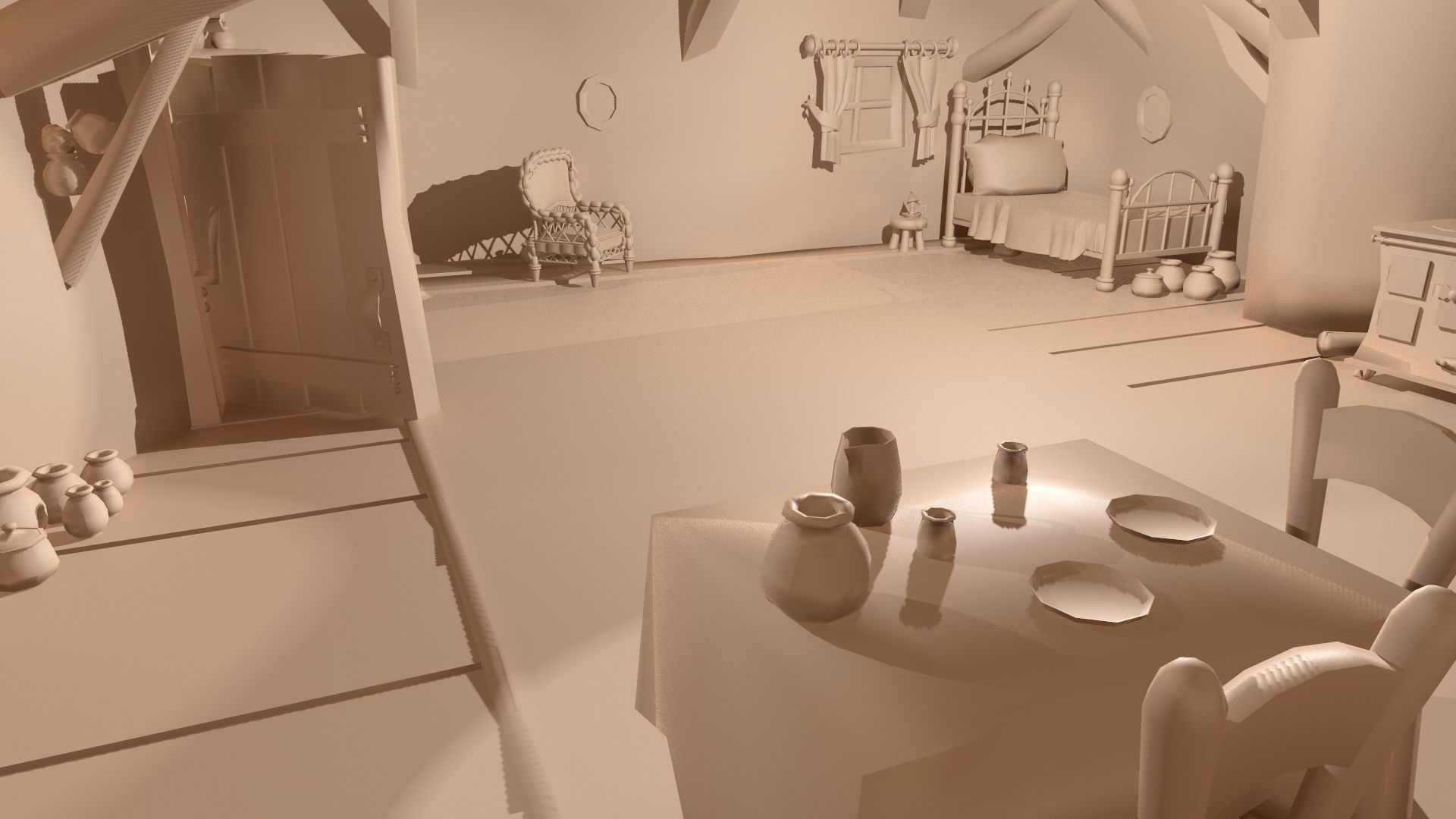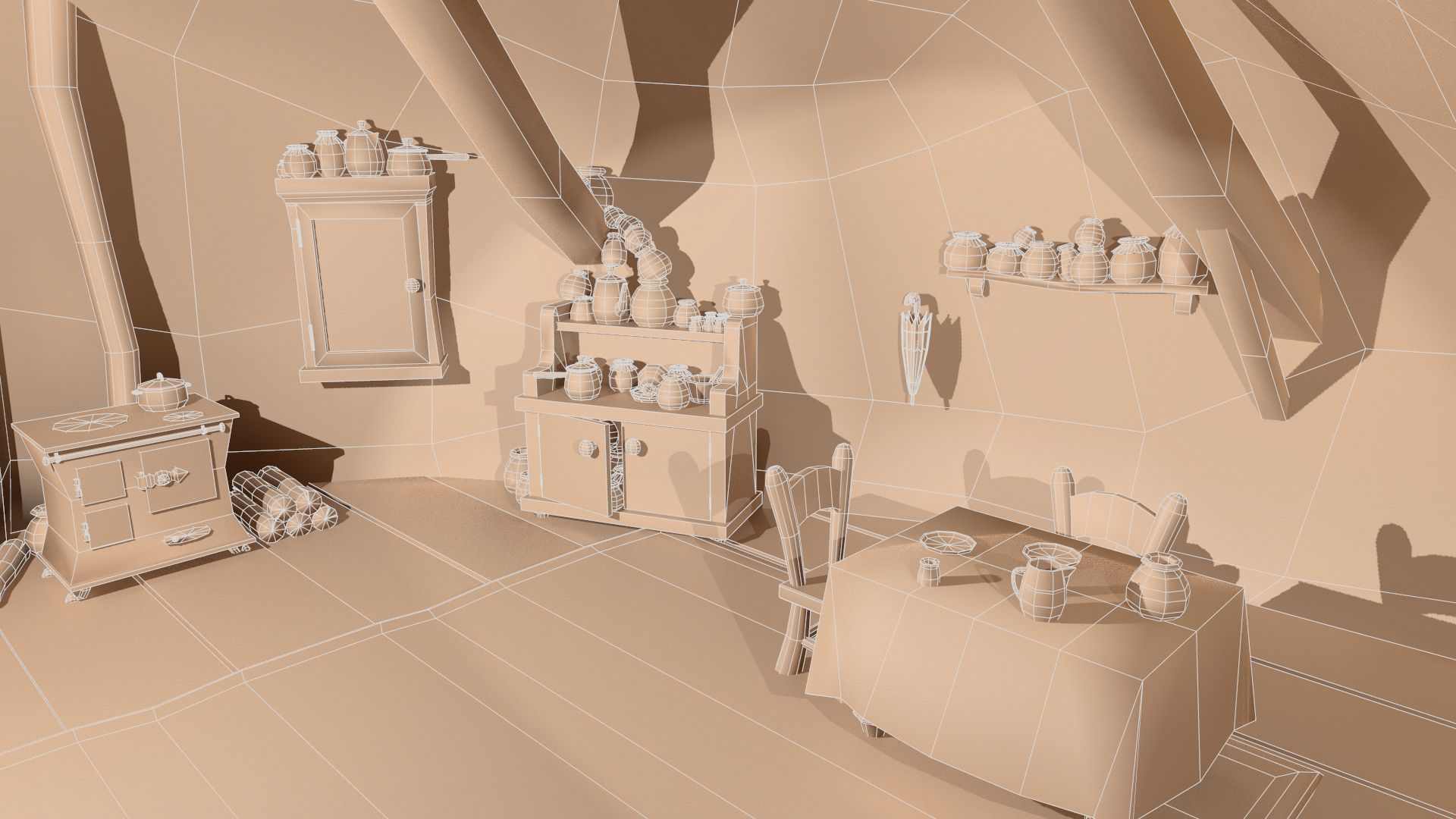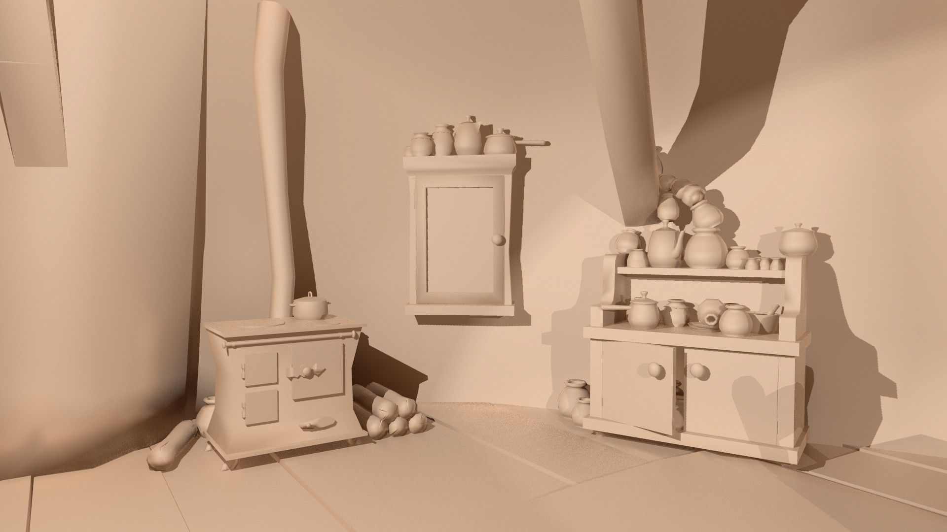 He hecho el exterior y el interior y solo me faltarían las texturas. Aunque la copa del árbol la retocaré, ya que la veo muy puntiaguda.