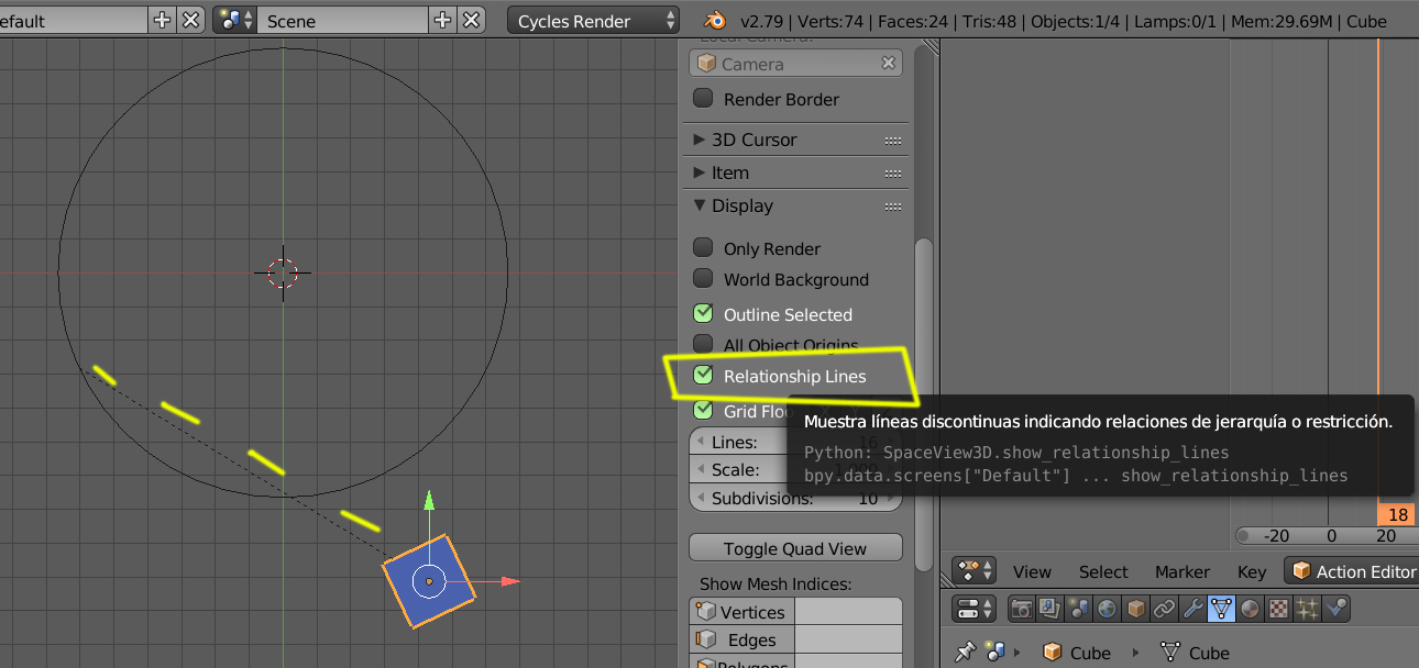 Si lo hago con el círculo y el Empty en el centro del sistema, no hay problema, pero si lo hago en cualquier otro punto del espacio, el Empty se vincula al círculo per separado de él