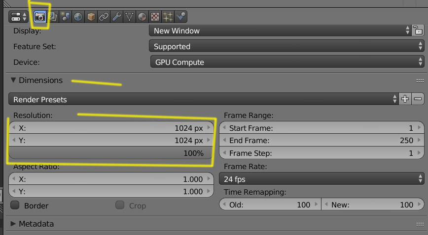 Eso se pone en Render > Dimensions.