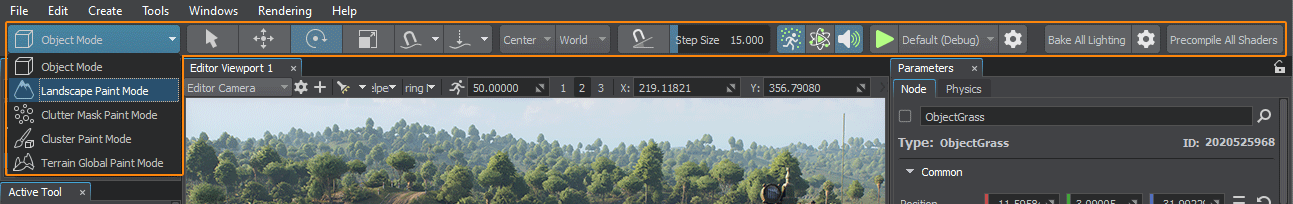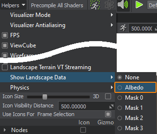 Se ha añadido la capacidad de visualizar los datos de albedo de depuración del terreno paisajístico a través de Helpers->Landscape Data -> Albedo (o a través del comando render_show_landscape_albedo console).