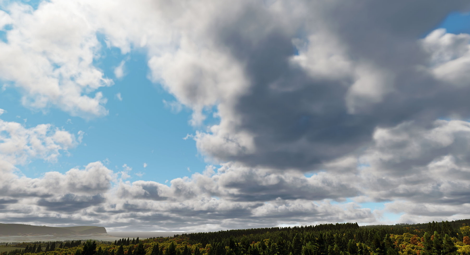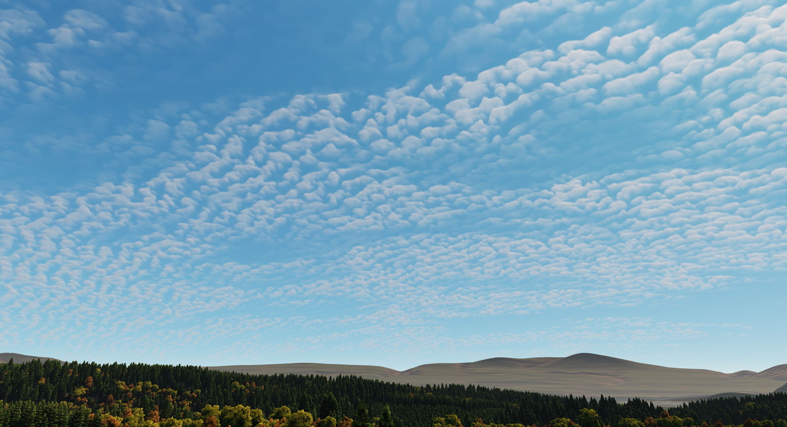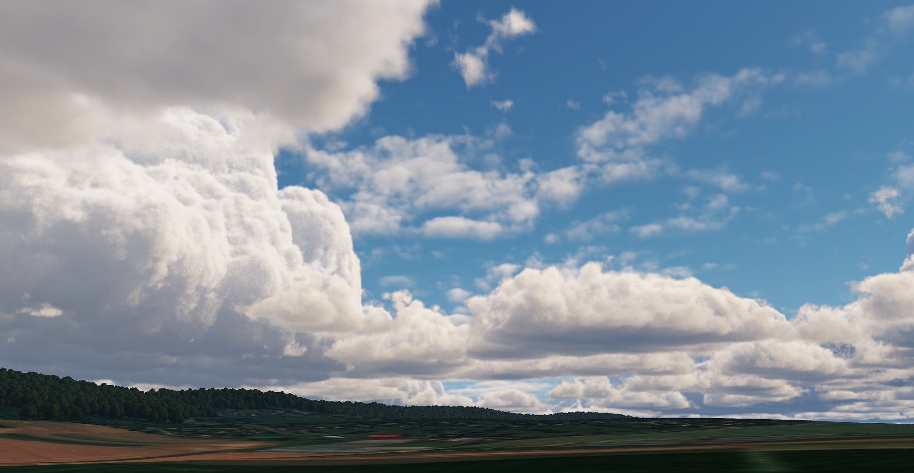 Para que esas nubes queden realistas también se ha añadido un nuevo parámetro coeficiente de atenuación al material clouds_base que te permite controlar la tasa de crecimiento de opacidad mediante el canal alfa con la distancia dentro de la nube, imitando el volumen de la nube y arreglando una rotura a una cierta altura que aparece en el proceso de renderización de capas de nube curva cuando se ve desde el interior de la capa.