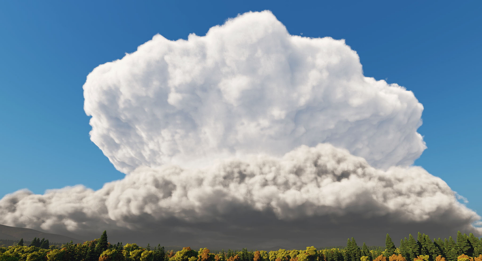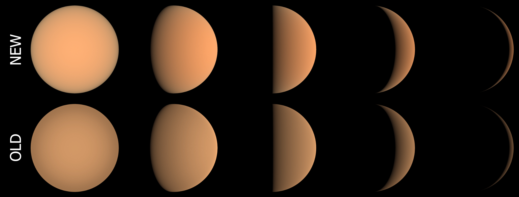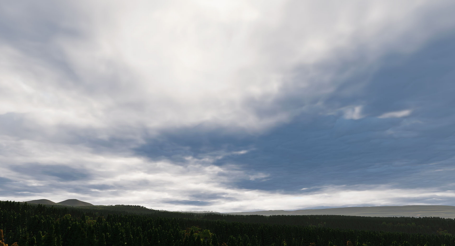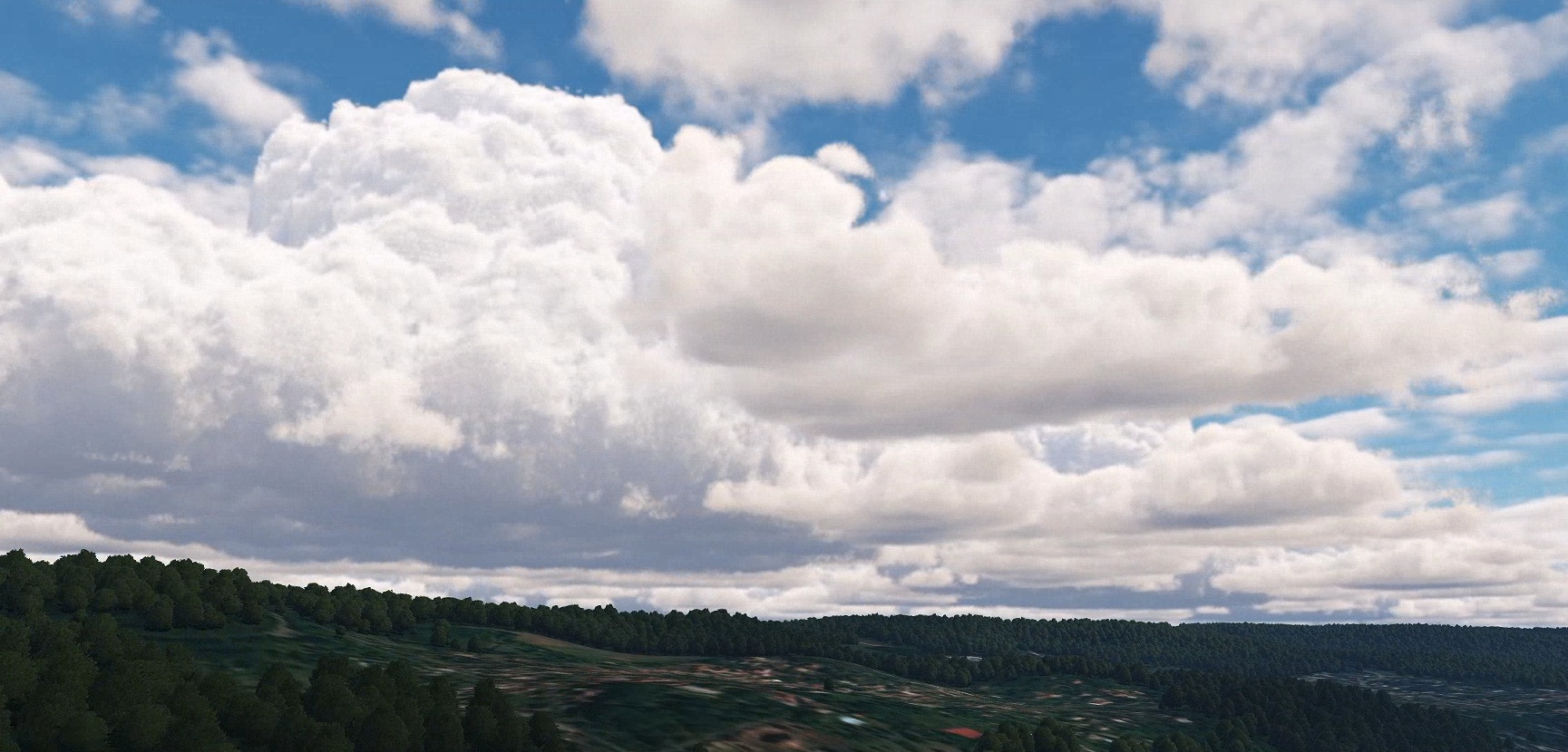 Para que esas nubes queden realistas también se ha añadido un nuevo parámetro coeficiente de atenuación al material clouds_base que te permite controlar la tasa de crecimiento de opacidad mediante el canal alfa con la distancia dentro de la nube, imitando el volumen de la nube y arreglando una rotura a una cierta altura que aparece en el proceso de renderización de capas de nube curva cuando se ve desde el interior de la capa.