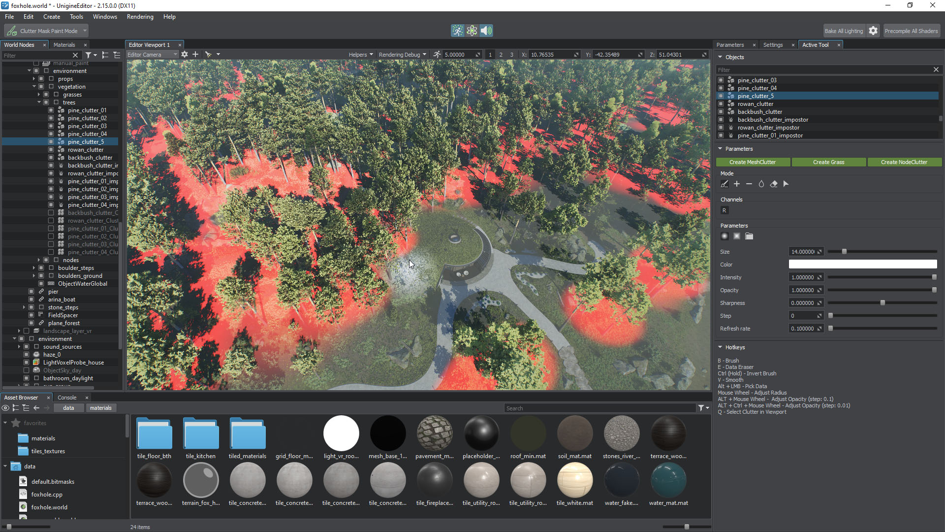 Ahora está disponible con más flexibilidad en la configuración de los detalles del terreno paisajístico, donde se puede controlar la rotación y el desplazamiento de los detalles a través de los parámetros correspondientes del material landscape_terrain_detail_base. Estos parámetros también se pueden utilizar para reducir el mosaico.