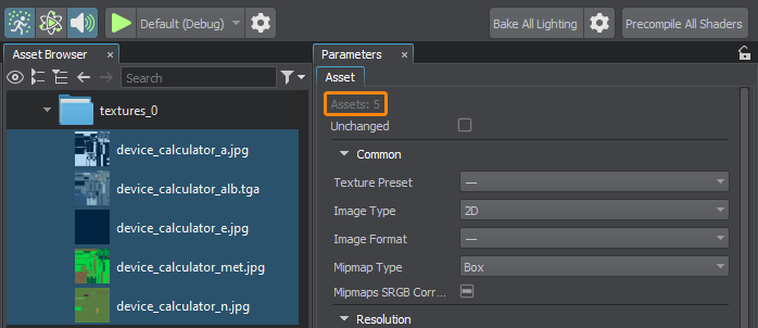 Cambios en la forma de cargar materiales, de forma predeterminada, la carga de materiales en Unigine está optimizada para reducir los picos moderados, el consumo medio de memoria y el tiempo de carga en el inicio del motor y del editor.