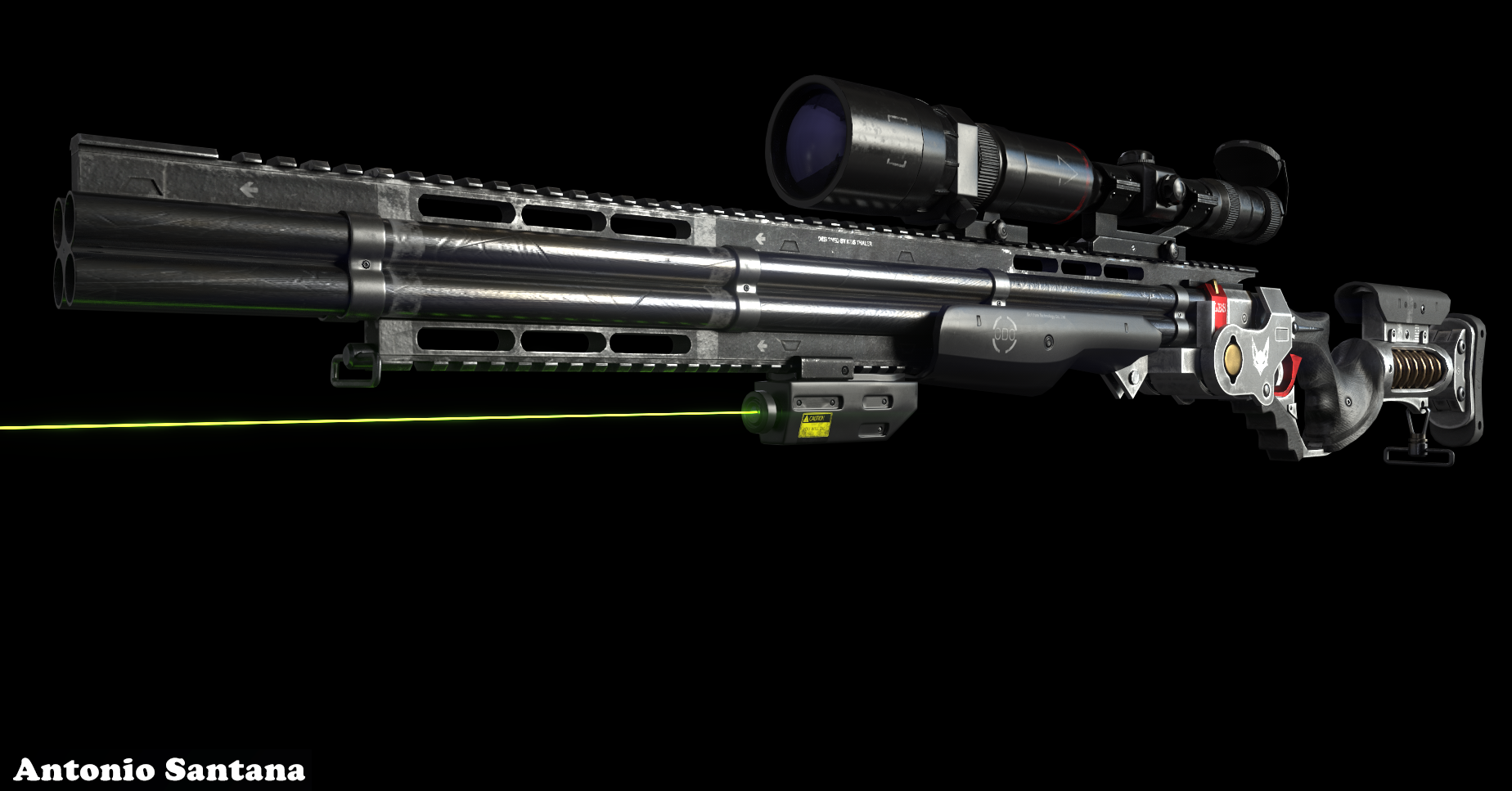 Buenas, les dejo unos renders de un rifle modelado en Blender y texturizado y renderizado en SP. El diseño es de Kris Thaler https://www.artstation.com/artwork/B1Zxz se admiten consejos, espero les guste.