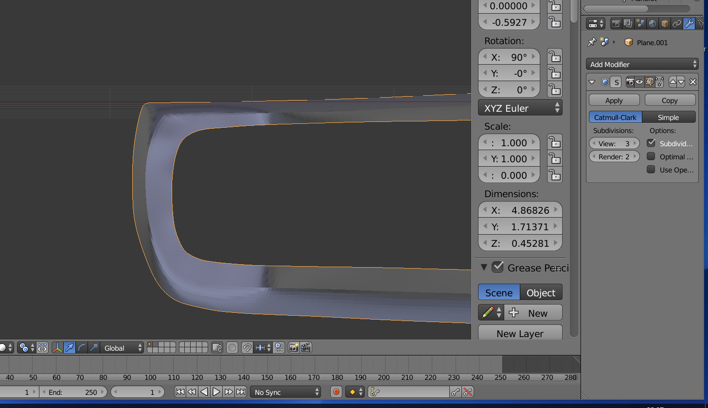 Hola, soy nuevo en este mundo del modelado 3d. Estoy haciendo un bumper de un auto clásico. Lo que sucede es que cuando trato de aplicar el modificador Subsurf el resultado es diferente entre los modos Object mode y Edit mode, voy a adjuntar dos imágenes para dar a entender un poco más la situación. Soy bastante principiante, entonces no sería de extrañar que la malla esté mal echa, y les agradezco que me corrijan si eso sucede.muchas gracias.
