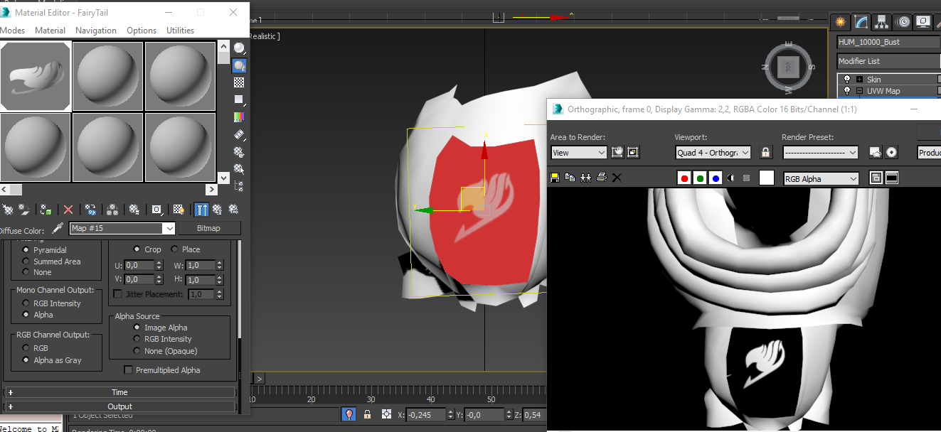Hola. Gracias por responder. Sí, importé el modelo del juego en 3DS Max, así que, seleccione una zona en la qué quiero poner el logotipo, luego agregué la imagen. En Diffuse puse la imagen del logotipo a color con fondo blanco y en Opacity puse la imagen del logotipo blanco con fondo negro, aun así al exportar el color que asigno solo toma la zona en la qué puse el logotipo, pero el logotipo no se ve.
