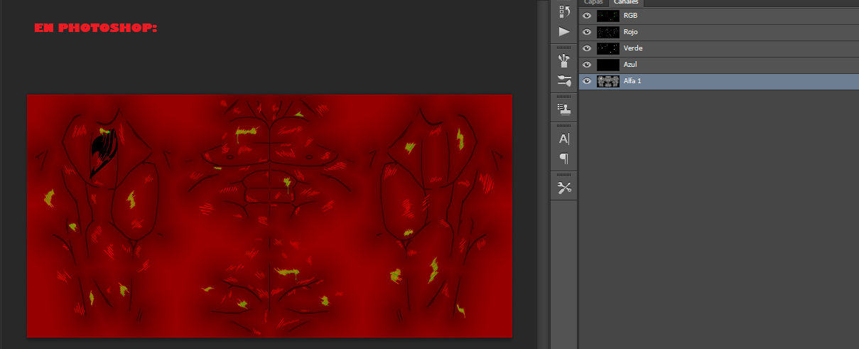 Como decía, pegaba el logotipo en el mapa DATA005, sin embargo, este no salía en su color original en el modelo, sino en negro. Hasta ahora lo estaba pegando en el canal Alfa1, sin embargo, ahora lo pegué en ambos y funcionó. Ya qué si lo pegaba en el RGB ni siquiera aparecía. Bueno, haciendo eso ya aparece el logotipo en el hombro y a color.