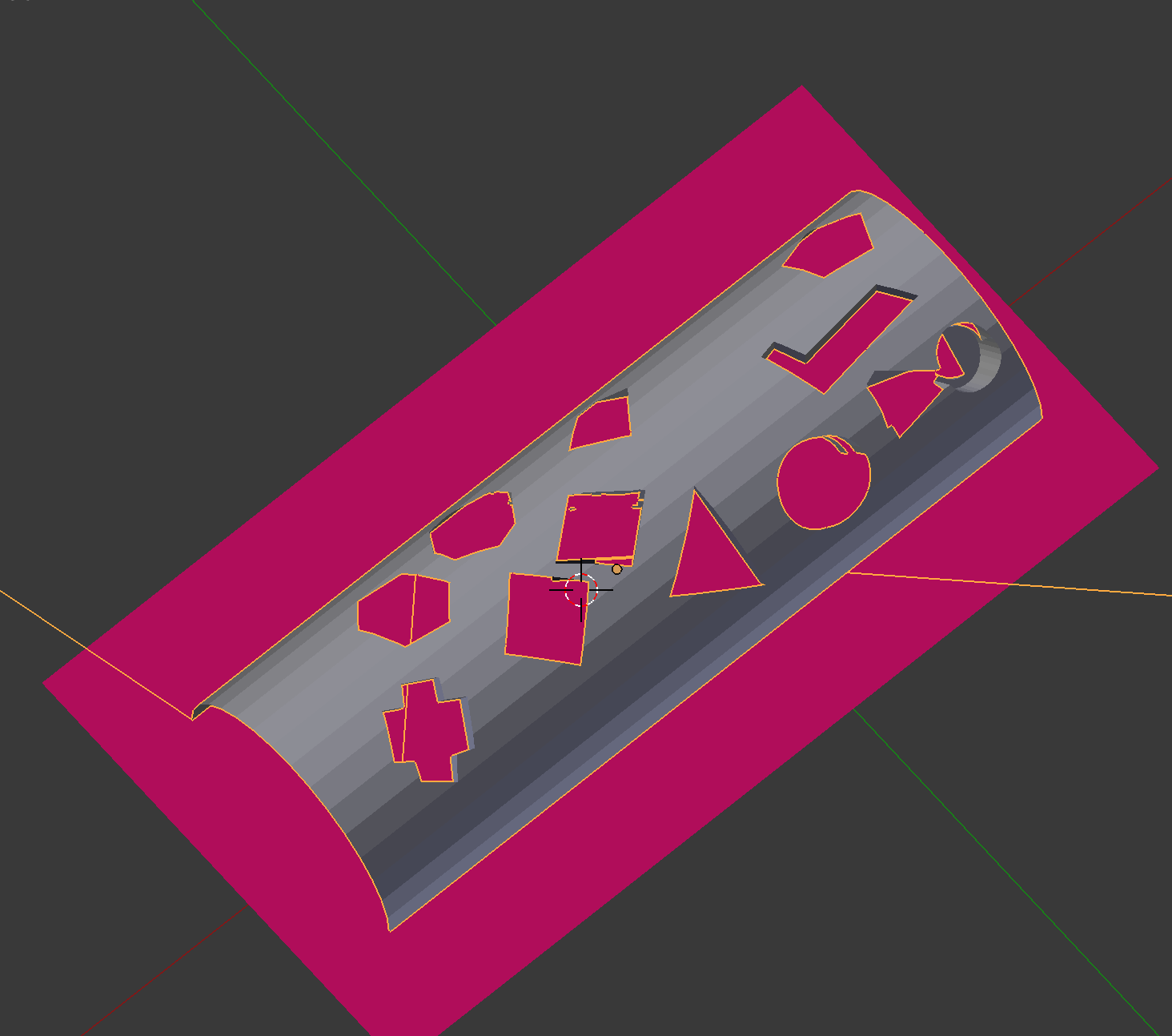 Por lo tanto estoy pensando si sería posible aplanar el cilindro, y así tenerlo en un plano y sobre ese plano ponerle encima los polígonos y pasarle las booleanas de diferencia para hacerle orificios.