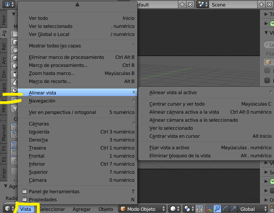 De todas formas en la vista 3D tienes la opción de Vista y te saldrá todo lo que hay sobre vista y cámara.