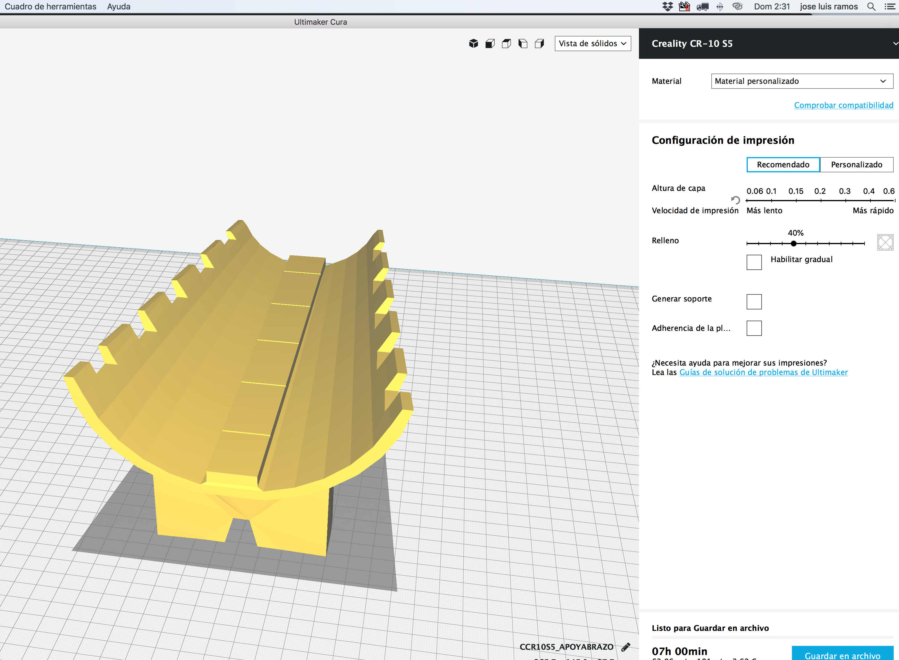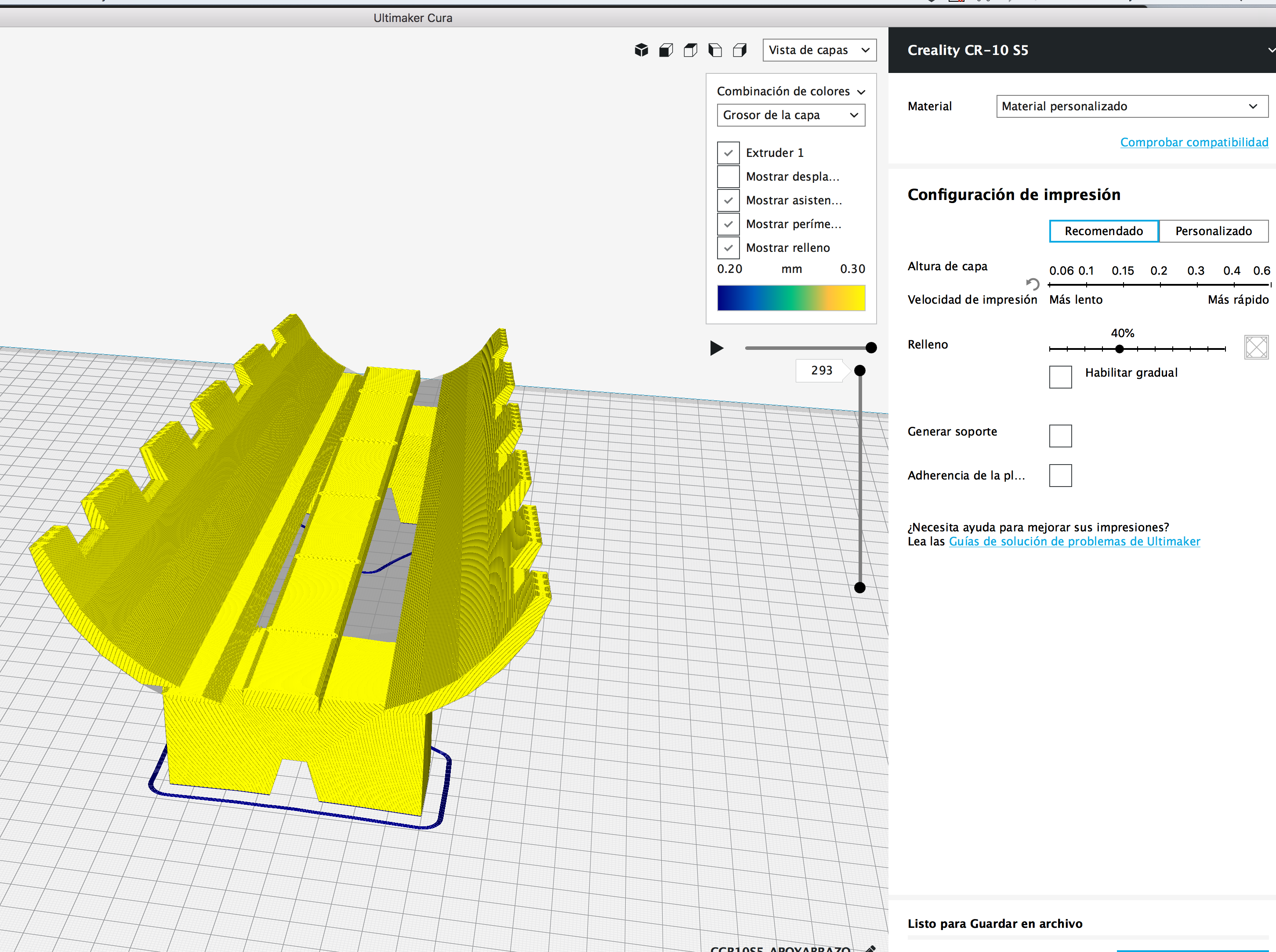He hecho una pieza, y al pasarla a CURA en modo solido se ve toda la pieza bien, pero al decirle que me enseñe las capas, no se sale parte de la pieza.