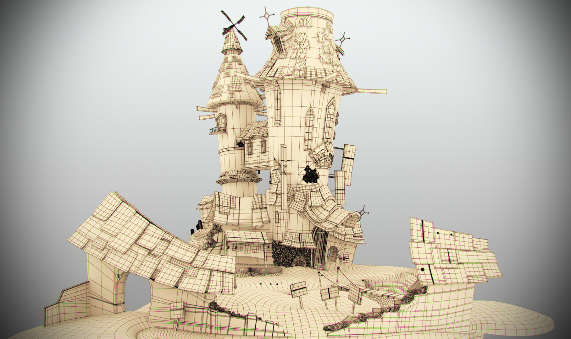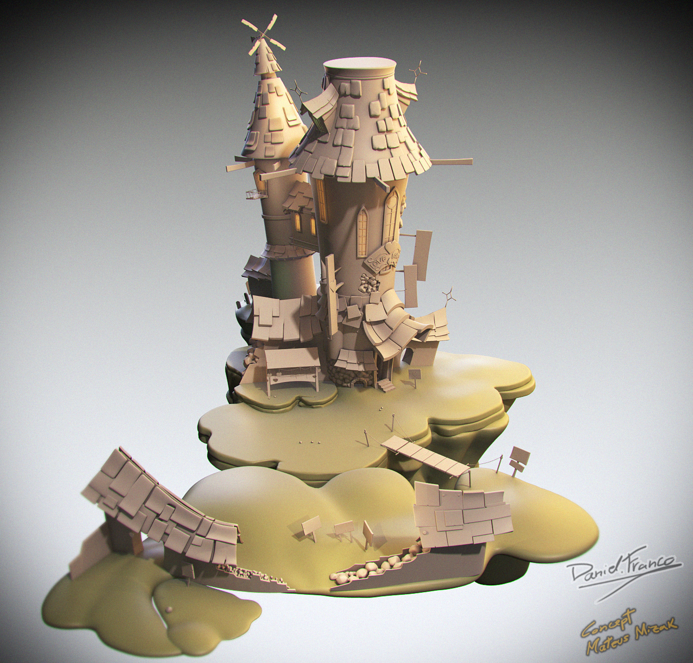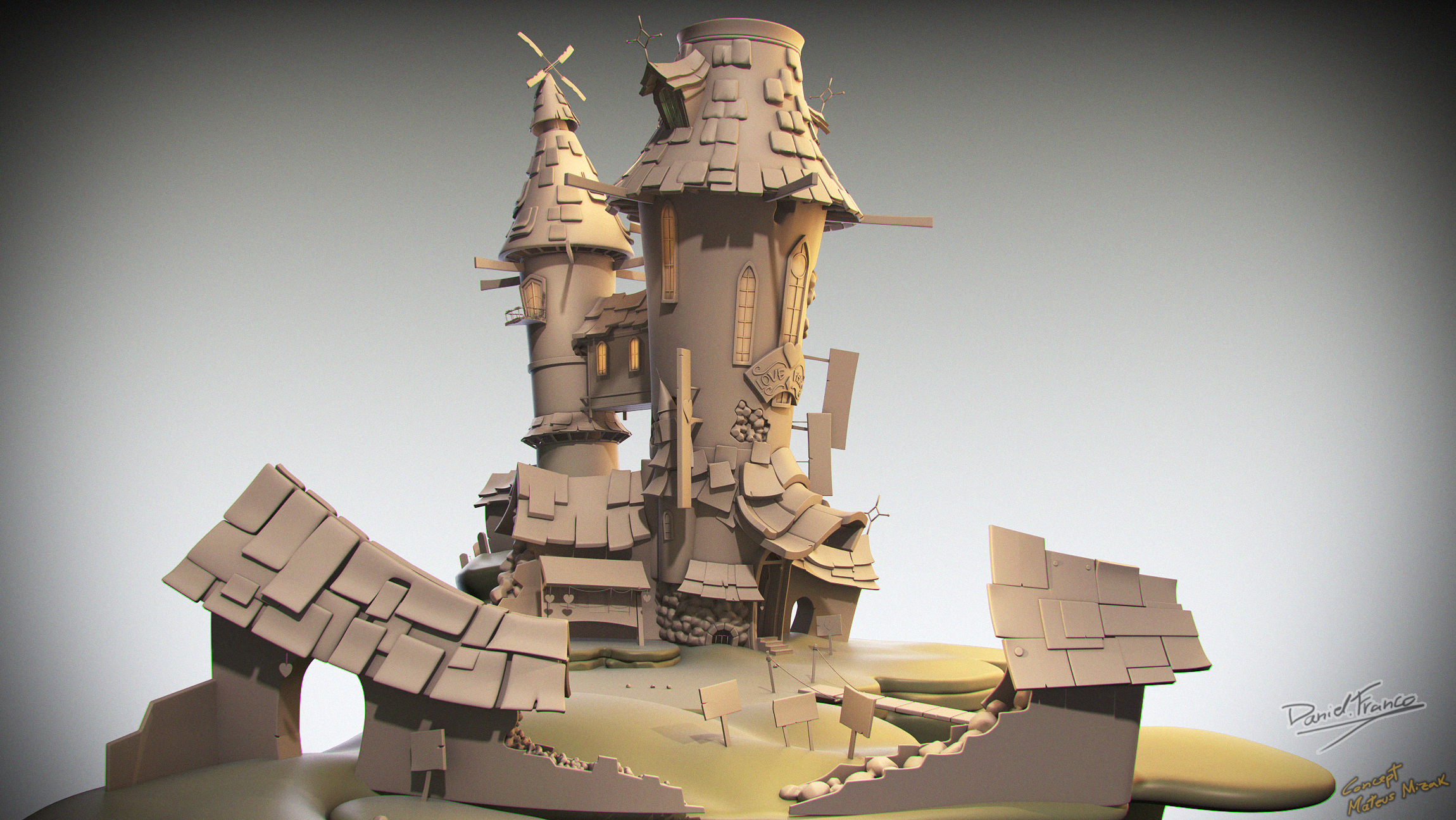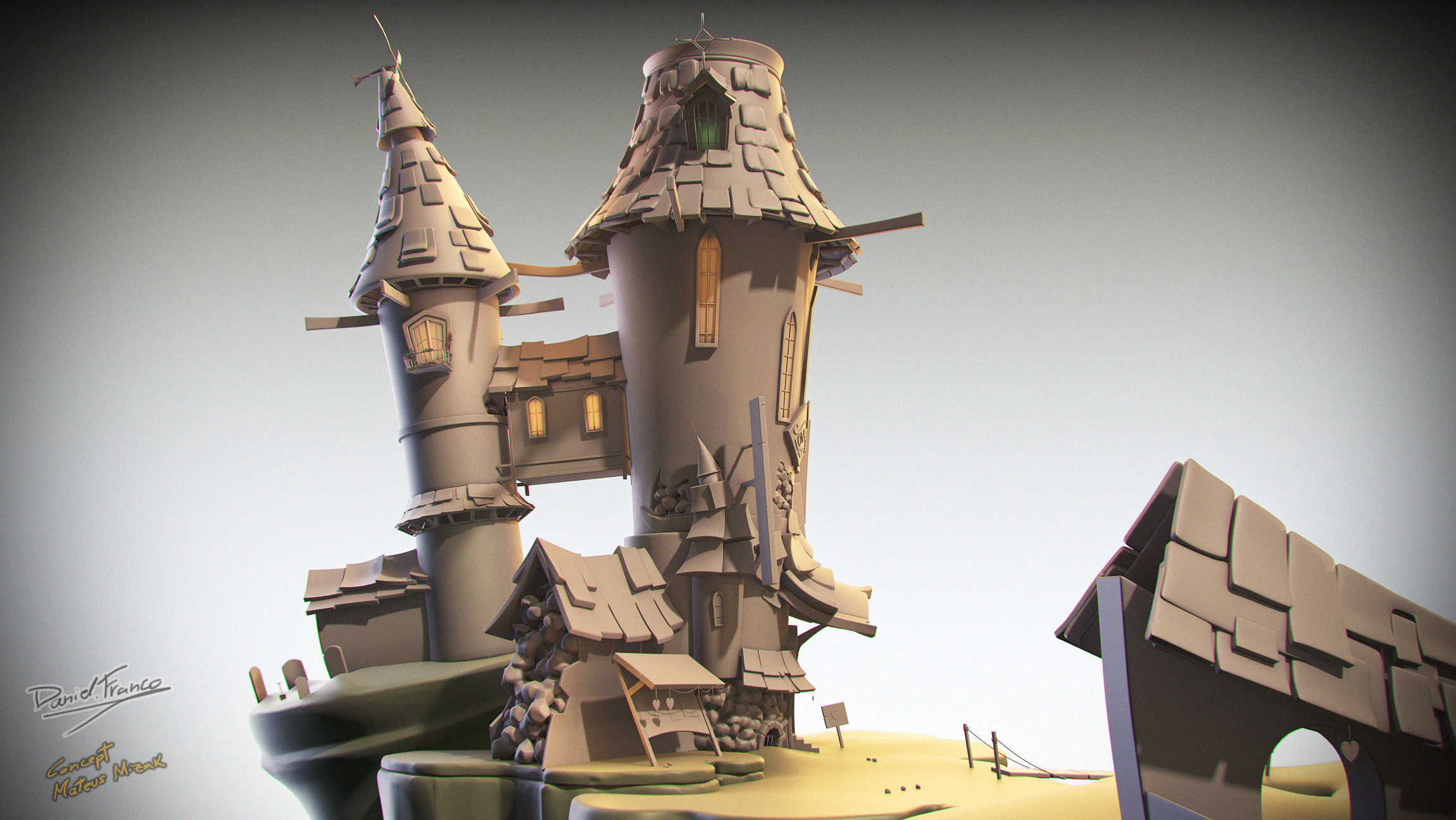 Saludos, continuando en la recta casi final de mi reel, comparto un proyecto basado en el concept de Mateus Mizak. Lo más complejo de emular estas ilustraciones 2d a 3d son esas distorsiones de cámara qué hacen dudar si son los objetos deformados o una efecto de lente, espero que os guste.