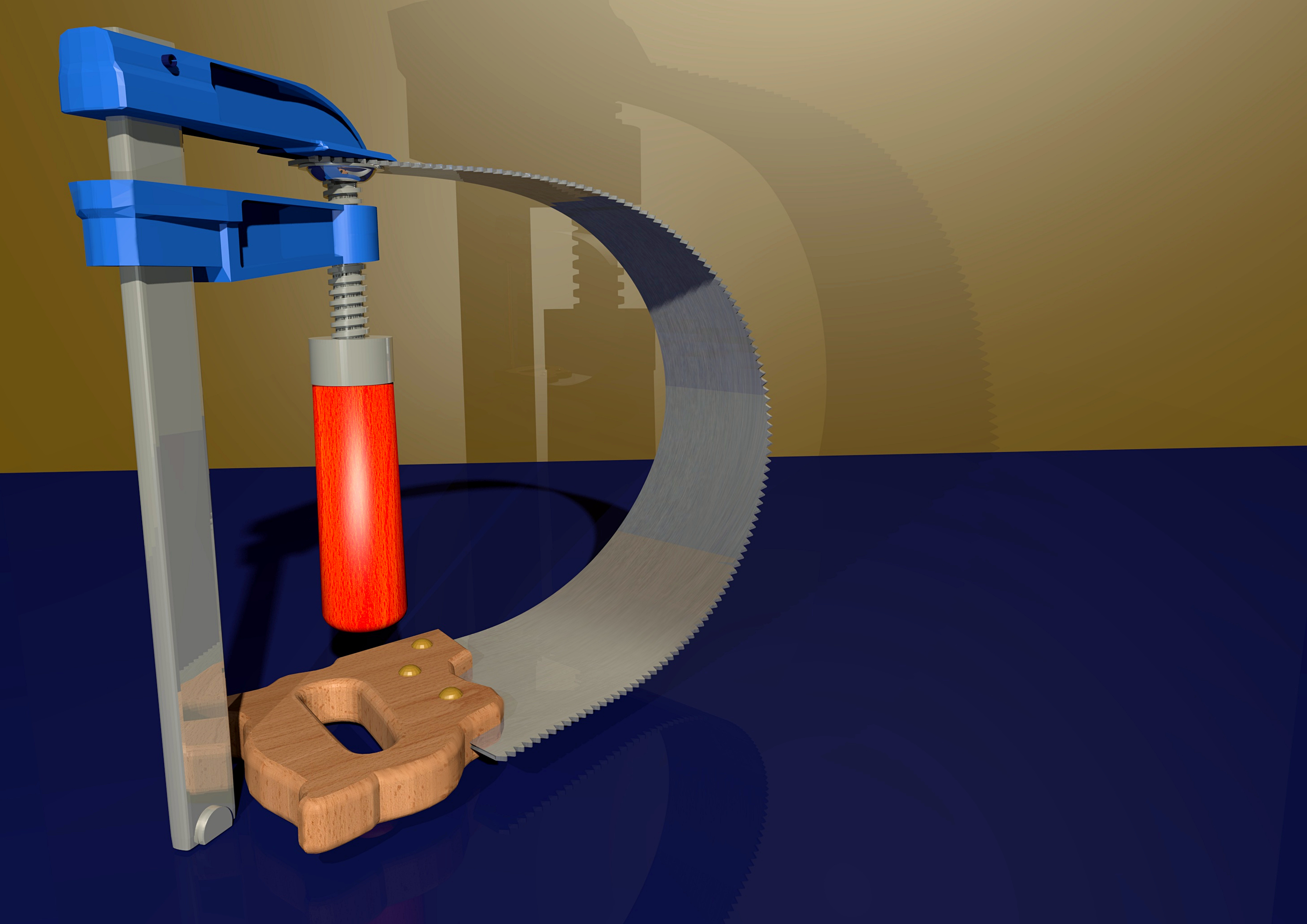Aprovecho para compartir uno de mis nuevos trabajos de aprendizaje, un alarde de fuerza y destreza para conseguir doblar un serrucho de ciento veintisiete dientes y dejarlo ahí hasta que me plazca, :.