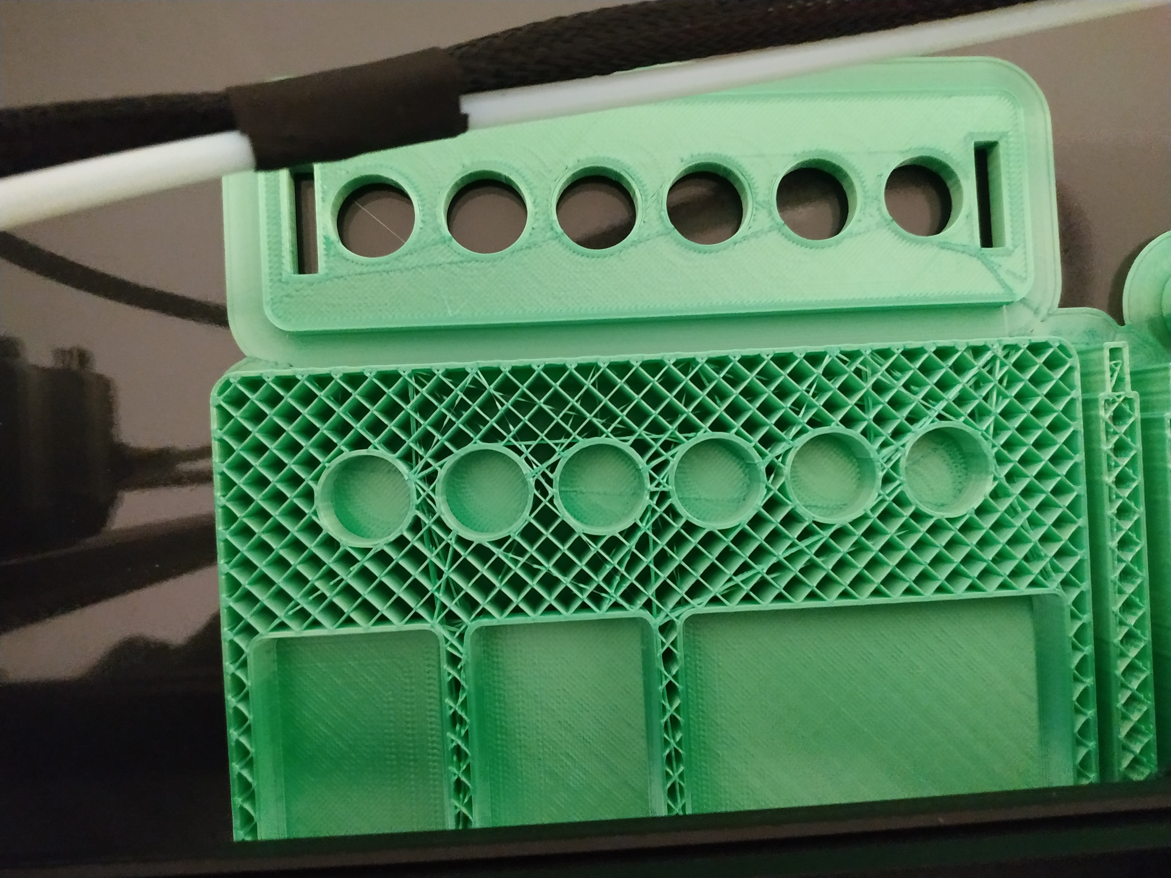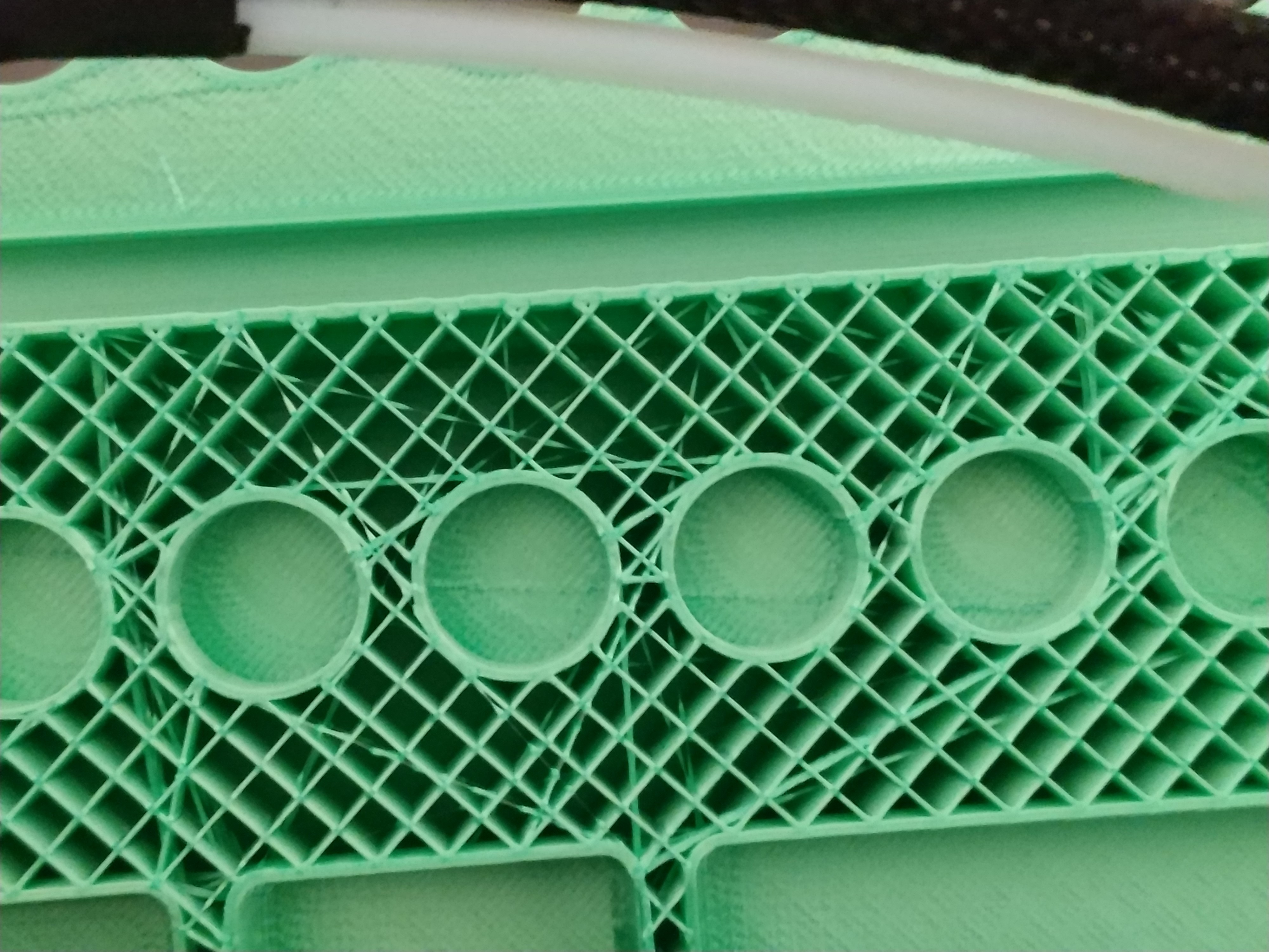 -En las ultimas dos piezas me ha dejado varias capas entre medías del relleno y se nota bastante en el acabado. Lei un mensaje por ahí abajo sobre la distancia y velociad de retraccion, lo ajuste pero me volvió a salir. Al laminarla en cura tampoco aparecen las líneas en la geometria, coinciden con el desplazamiento.