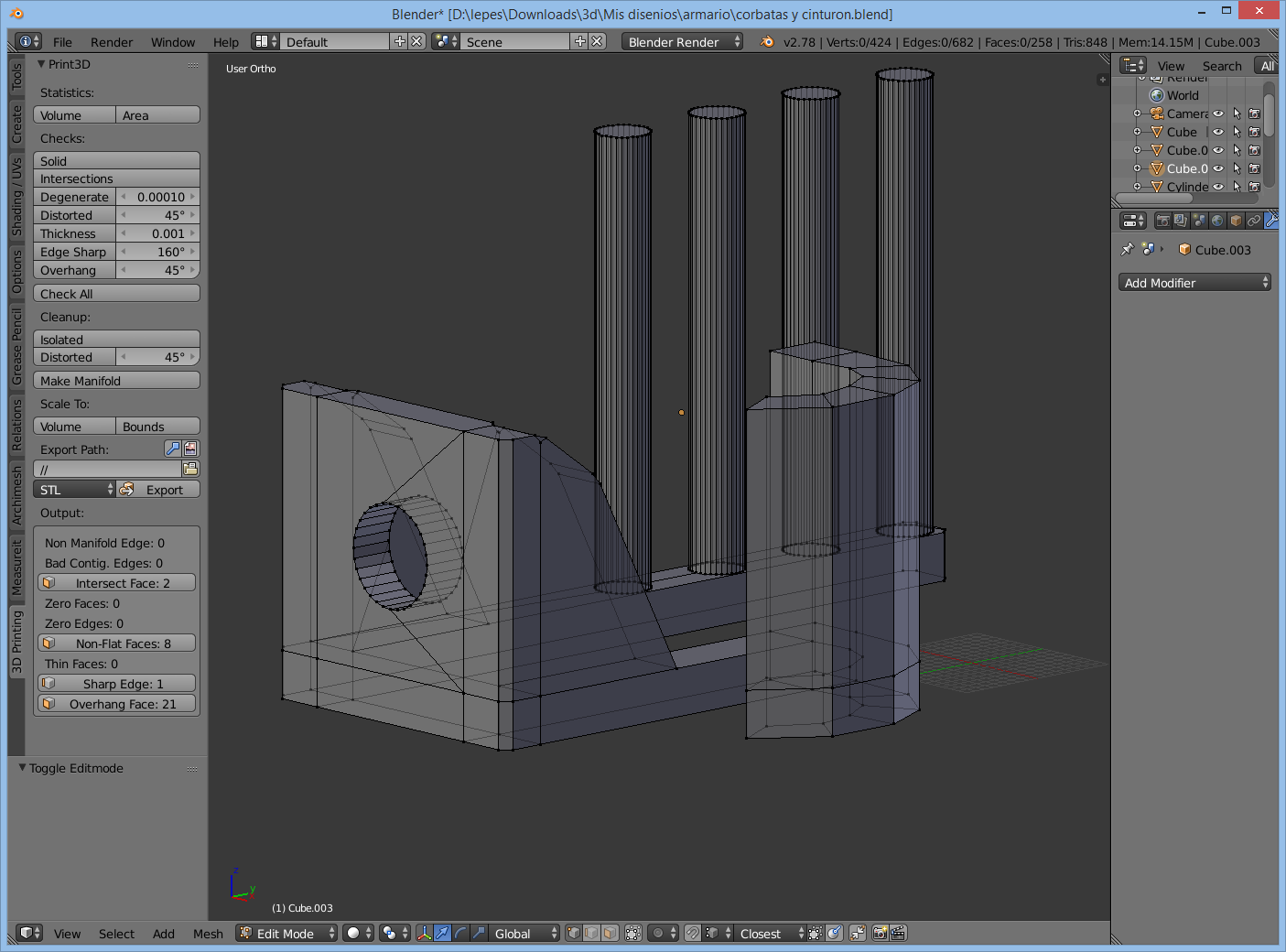 - Si usas Blender 3D, activa el plugin que viene de serie 3D Printing, entra en modo Edición del objeto y dale a Check All