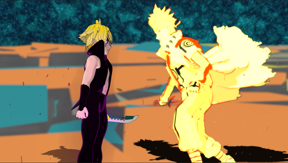 En esta animación hice los modelos de meliodas y del escenario, los modelos de naruto son extraídos del juego, hice la animación y el render 3d lo hice con C4D, lo compuse todo con After effects y lo edite con Adobe Premiere pro
