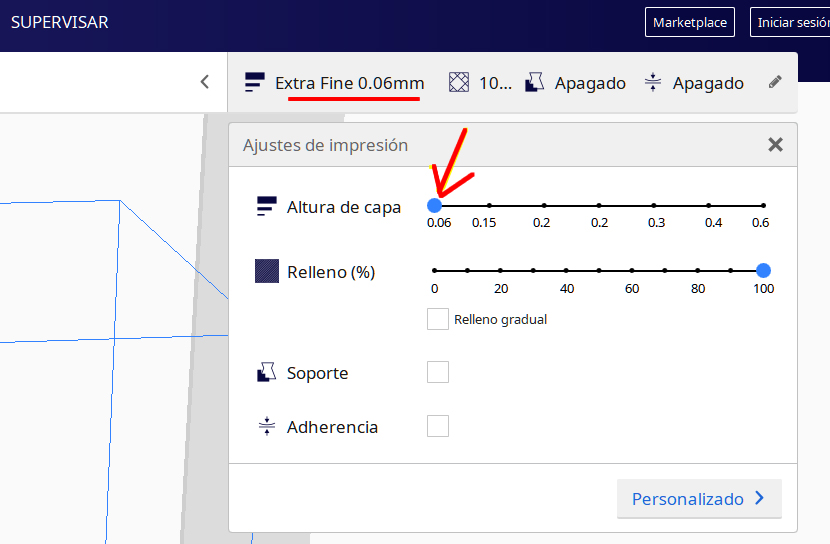 Donde la mejor es de 60 micras, que en CURA se vería así