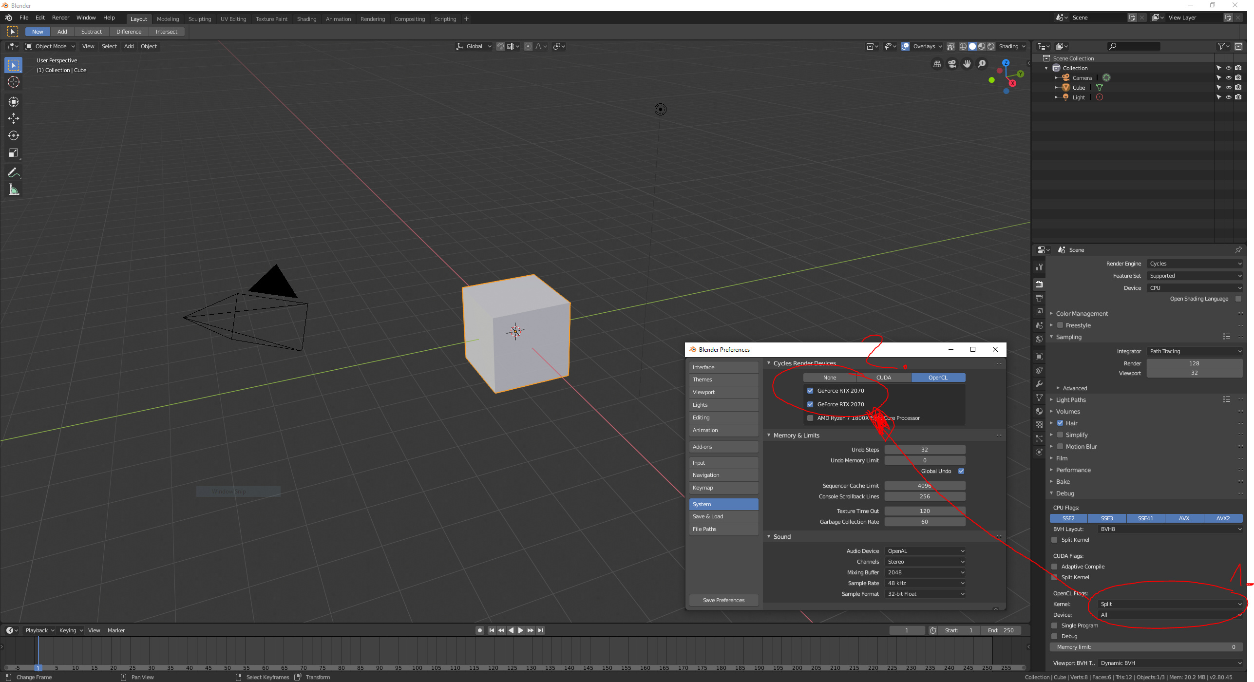 Hola, tengo un problema con Blender y esta librería, no detecta la GPU (GTX 750 en el sobremesa (solo detecta Cuda), r5 m430 o Intel 550 en el portátil) y no puedo usar Cycles en el portátil con su GPU, he probado a poner en el CMD de Windows set cycles_opencl_test=all pero no funciona, en Blender artista he encontrado esta imagen, pero la opción debug no existe.
