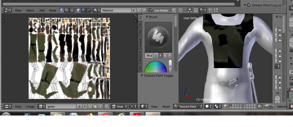 Pero cada vez que entro en Texture Paint me aparece debajo del Unwarp el UV/map del cuerpo del avatar. En Image aparece green (UV/MAP), aunque la elimino con la X, el material del nuevo objeto no GUARDA esa eliminación: